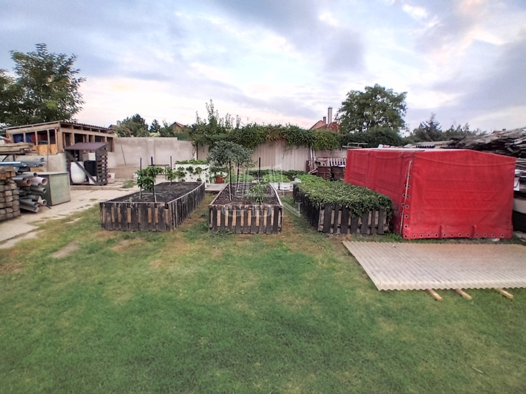 •rendezett udvar, a hátsó részen magas ágyásokkal