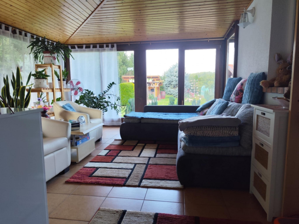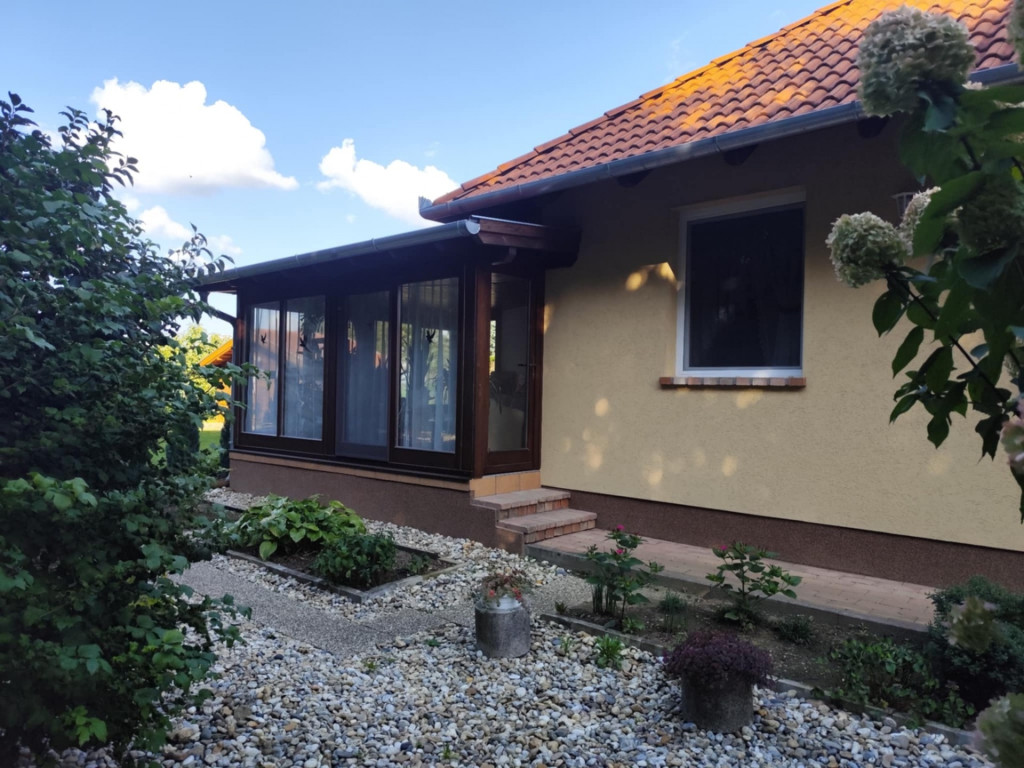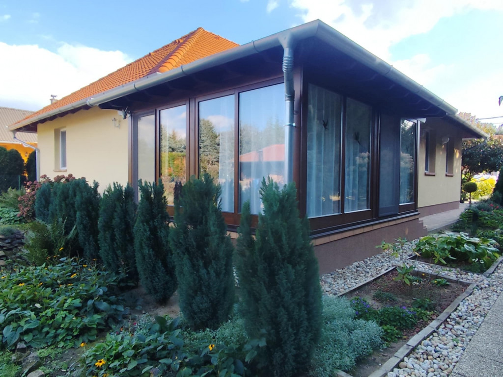 - zárt, két oldalról üvegezett, a nappaliból megközelíthető terasz (kijárat az udvarra is)