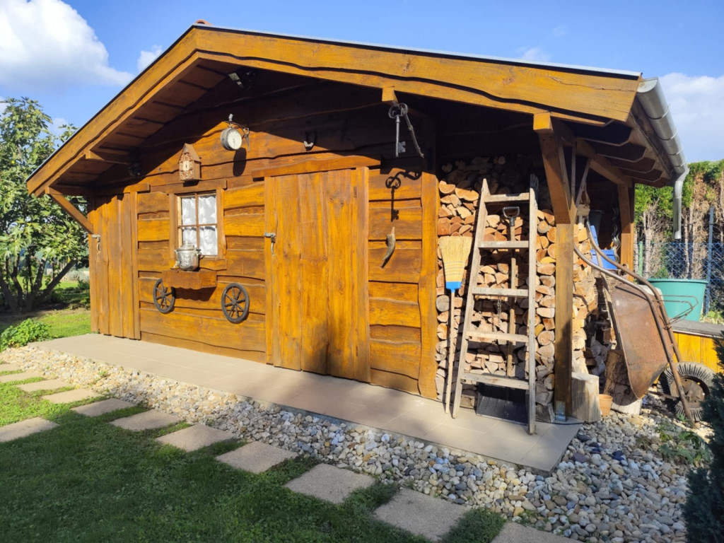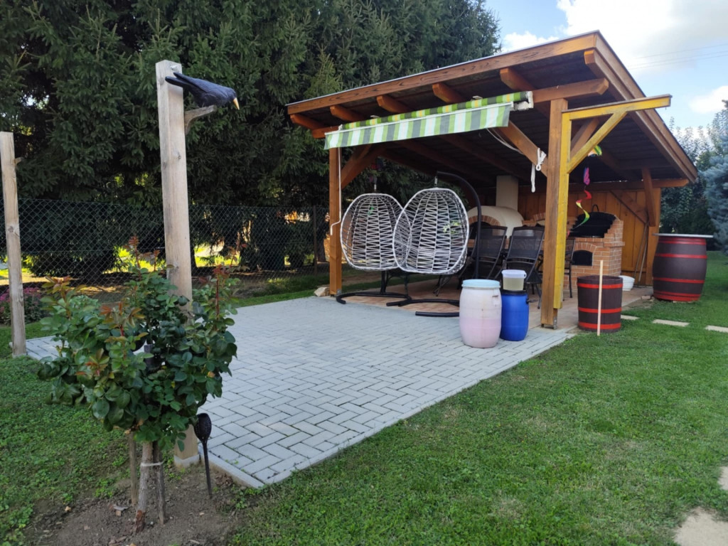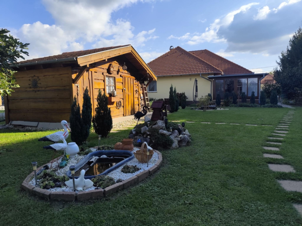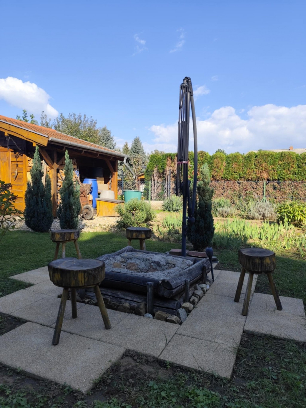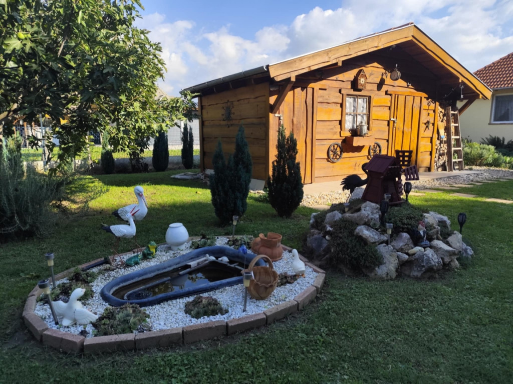 Az udvaron található egy fedett, épített grillező, valamint egy 17 nm-es erdélyi faház, tárolásra vagy akár kisebb műhelyként is használható.