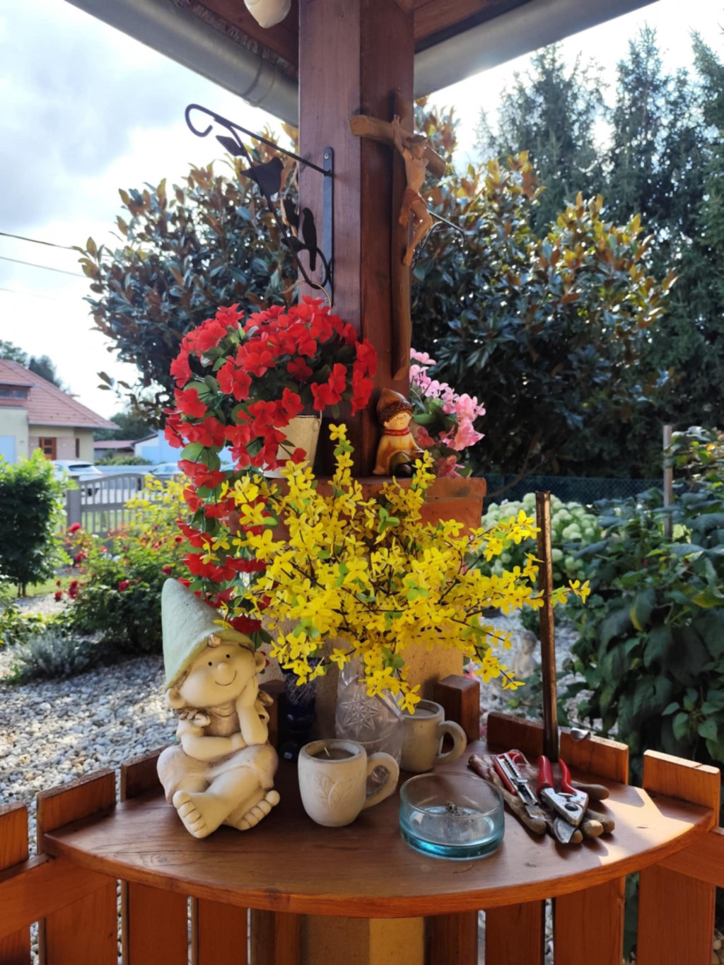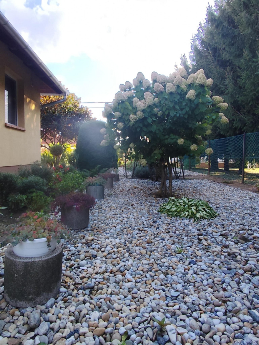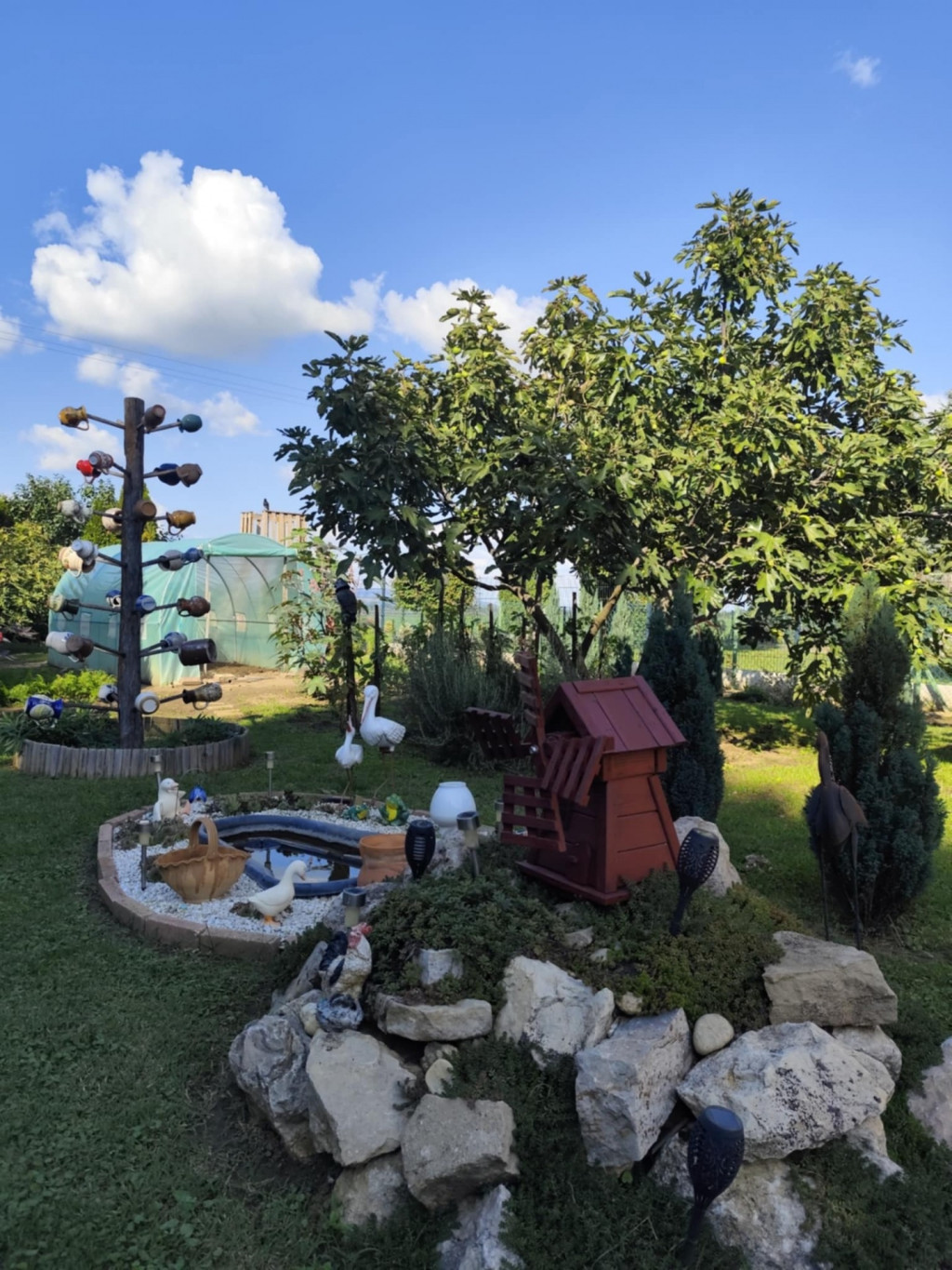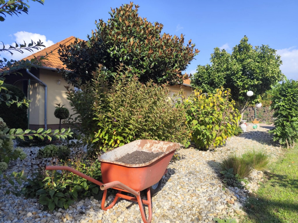 A telek teljesen körbekerített. A kertet számtalan dísznövény, gyümölcsfa ékesíti, minden négyzetcentimétere a gondos gazda keze munkáját dicséri. A szomszéd házak, sőt az egész utca rendet, békét sugároz.