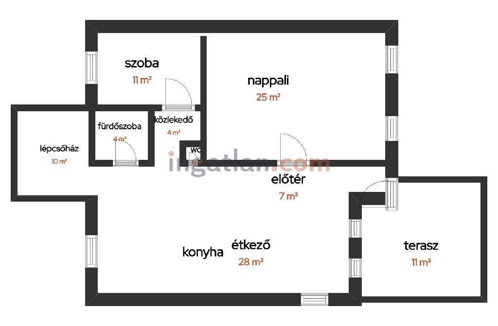 A felső szintek mind a házon belül, mind a külső lépcsőházból megközelíthetők.
