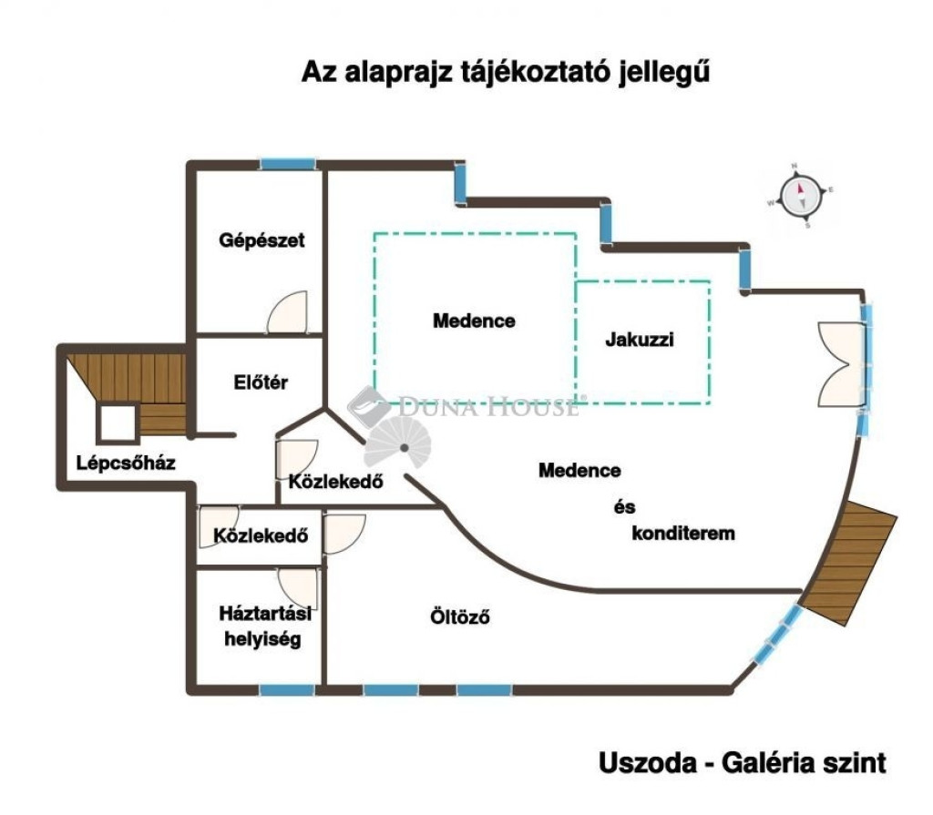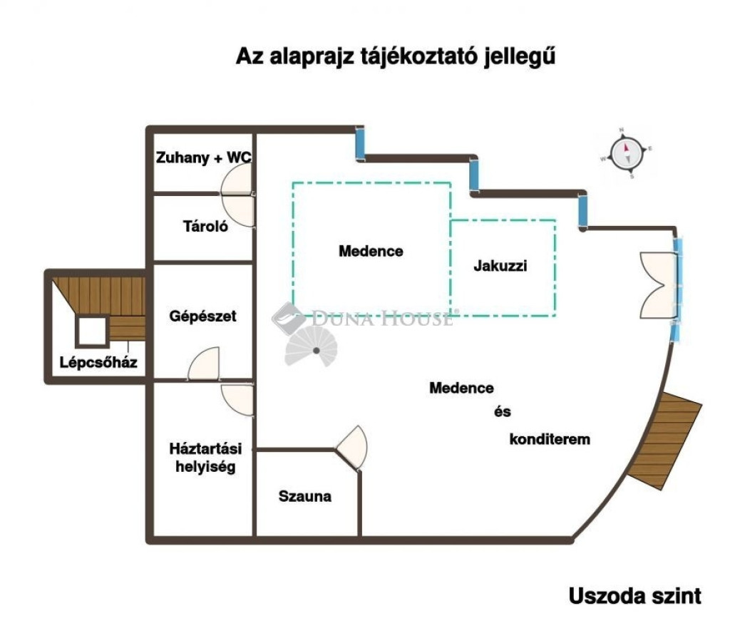 - Wellness részleg: A házhoz tartozó, közös használatú 151 m²-es szabadidő-wellness tér tartalmaz:úszómedencét úszógéppel, kisebb, pezsgő funkciós medencét finn- és infraszaunát, öltözőt, zuhanyzókat és WC-t. A medencetér fűtését gázkazánok és hőszivattyú is biztosítja, radiátoros és padlófűtés kombinációjával.