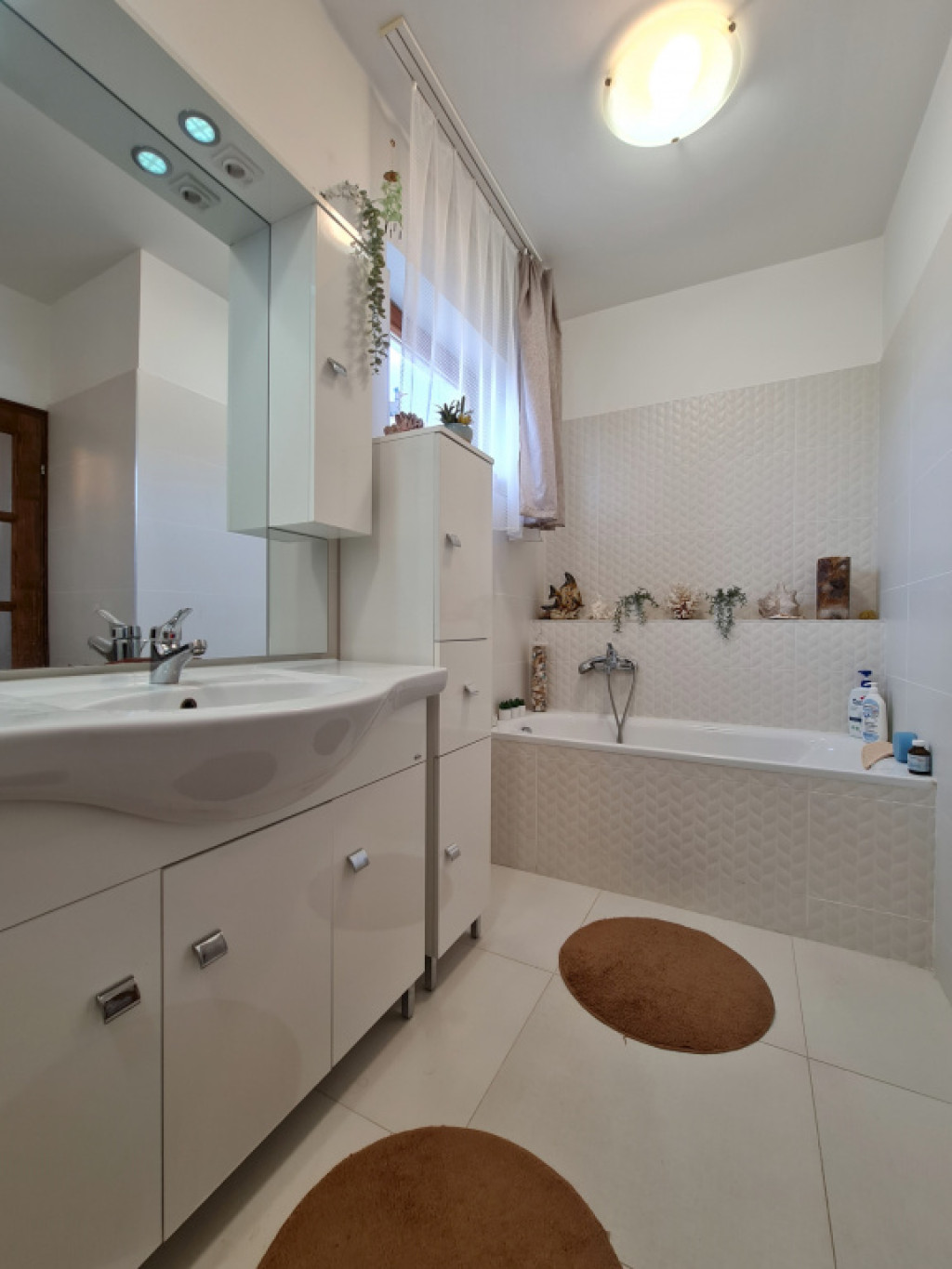 A lakás 2020-ban teljes körű felújításon esett át: új elektromos hálózat (3×16A), víz- és csatornarendszer, gépészet, aljzatbeton, burkolatok, konyhabútor, gáztűzhely, villanysütő, szagelszívó, belső és külső nyílászárók, sőt, még a tető is megújult. Itt valóban minden új, minden készen áll.