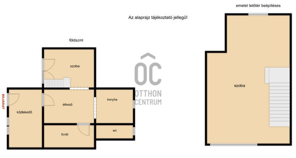 Padlástér (12 m2) beépíthető, akár további szoba kialakítására alkalmas