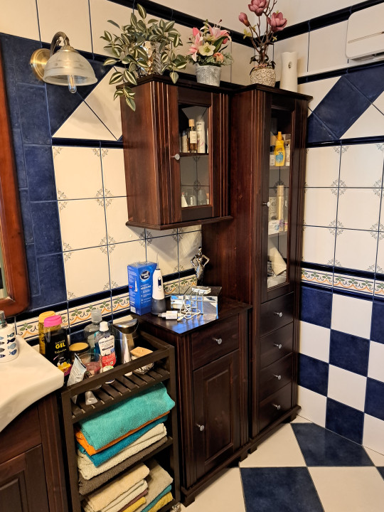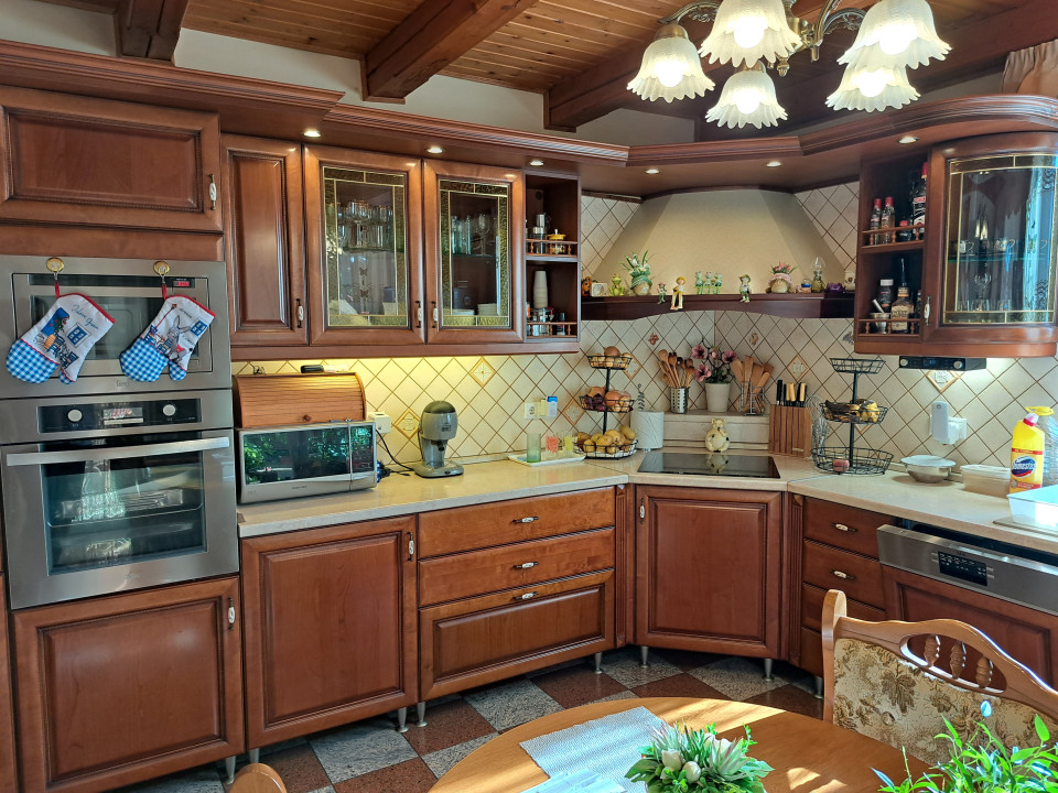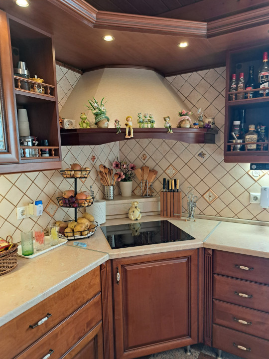 Mind a két lakrészben van klíma. A házban, cserépkányha, étkező konyha, teljesen felszerelt cseresznyefából készült konyhabútor, mely benne van az árban, kamra és mosókonyha van. A konyhából és a nappaliból kijárat nyílik a 25 nm -es teraszra.