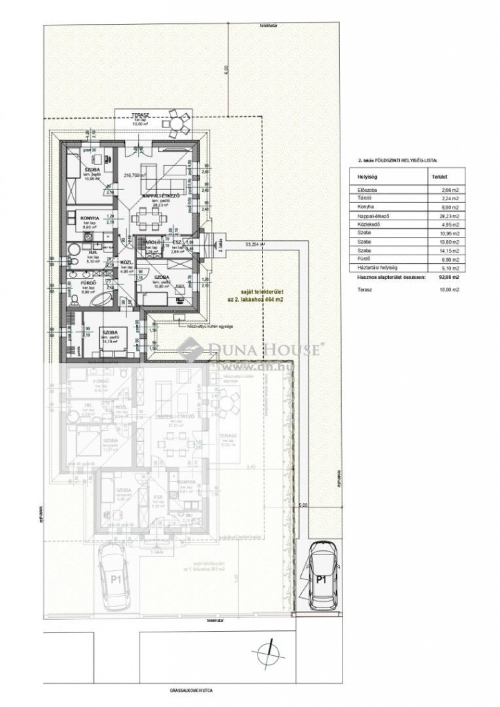 A 464 nm-es telekre épülő ingatlanhoz az udvarban gyalogos bejáró és fedett kocsibeálló kerül kialakításra
