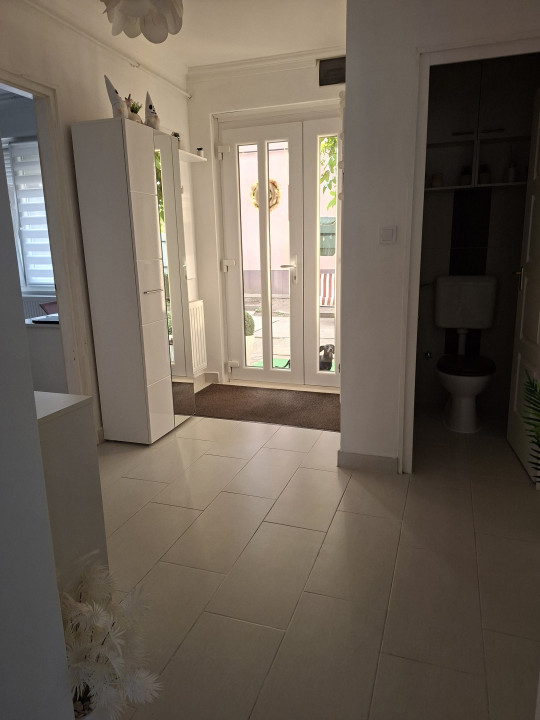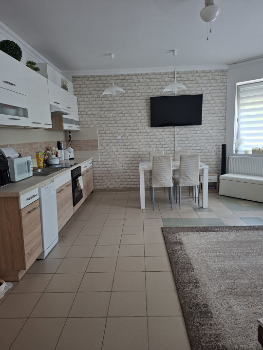 Eladó 77m2 amerikai konyhás nappali étkező konyha, 2 szoba, előszoba, fürdőszoba, wc külön. A konyha beépített mosogatógép dupla mosogatótálca páraelszívó főzőlap elektromos sütő érintéses ledvilágítással felszerelt. Tágas világos helységek, nagy ablakok redőnnyel szunyoghálóval. Fürdőszoba káddal zuhanykabinnal 2 személyes mosdóval, bidével felszerelt. Szobák laminált parkettával, a többi helység járólappal burkolt