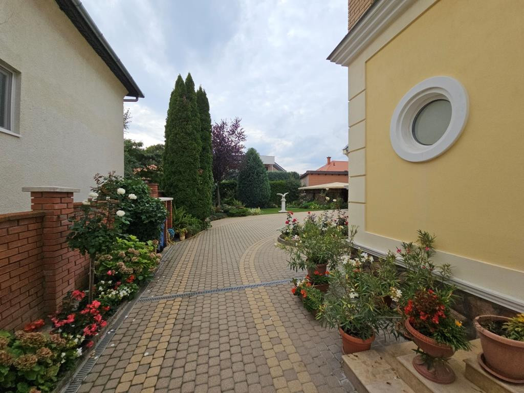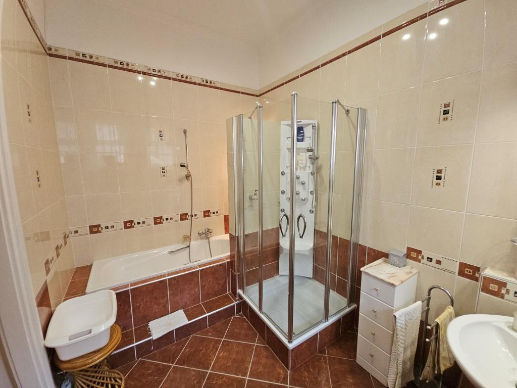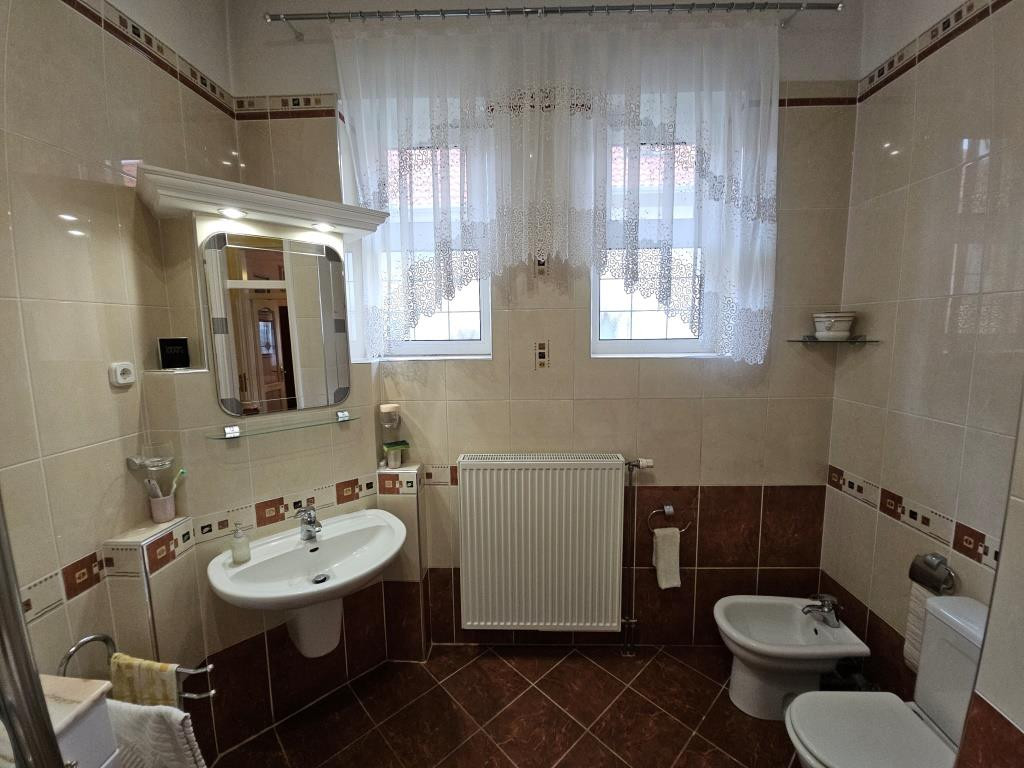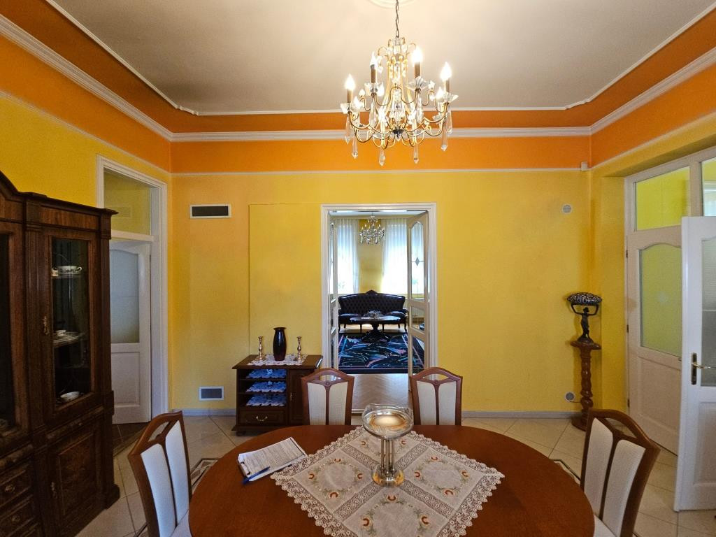 Kaposvár egyik legszebb utcájában, a Kassa utcában kínáljuk megvételre ezt az igazán igényesen megtervezett és felújított, kibővített elegáns kétlakásos polgári családiház önálló földszinti lakását a hozzá tartozó telekkel. Az étkező helyezkedik el középen, ide csatlakozik a délnyugati fekvésű, kert felé néző kellemes terasz, illetve innen nyílik minden további helyiség közvetve vagy közvetlenül. Van három tágas, keleti tájolású szoba - a szélső déli ablakkal is ellátva, - fürdő zuhanyzóval és káddal, külön WC, valamint a konyha. Plusz egy háztartási helyiség, ami részben mosókonyha, részben tároló, de itt kapott helyet a kazán és a bojler is. Mindhárom szoba megközelíthető külön is, de az első és a középső át is járható. Az első, délkeleti szobának önálló bejárata nyílik a lépcsőházból is, így akár iroda funkcióra is alkalmas. A nappaliként használt középső szobában van egy üvegfalú kandalló, ami nem csupán szép és jó hangulatú, hanem hasznosan egészíti ki a cirkós fűtést. Minden külső nyílászáró SCHÜCO tip., hőszigetelt üvegezéssel, redőnnyel. A lakás alatt több részből álló pince, hátul dupla garázs és melléképület áll rendelkezésre, ezek összesen 209 m2-et tesznek ki (lakótér: 128,54 m2, terasz: 13,31 m2, pince: 28,14 m2, garázs és tárolók: 39 m2). A telek 630 m2, a garázsokig térkövezve, egyébként gyeppel borított, szépen parkosított. Mind a lakás, mind a kert kiváló állapotban vannak. A 3 fázis vételezése mind az udvaron, mind a garázsban rendelkezésre áll. Elsősorban Pécsen vagy környékén építési telket, családi házat értékegyeztetéssel beszámítunk kizárólag olyan helyen, ahol van vezetékes internet.