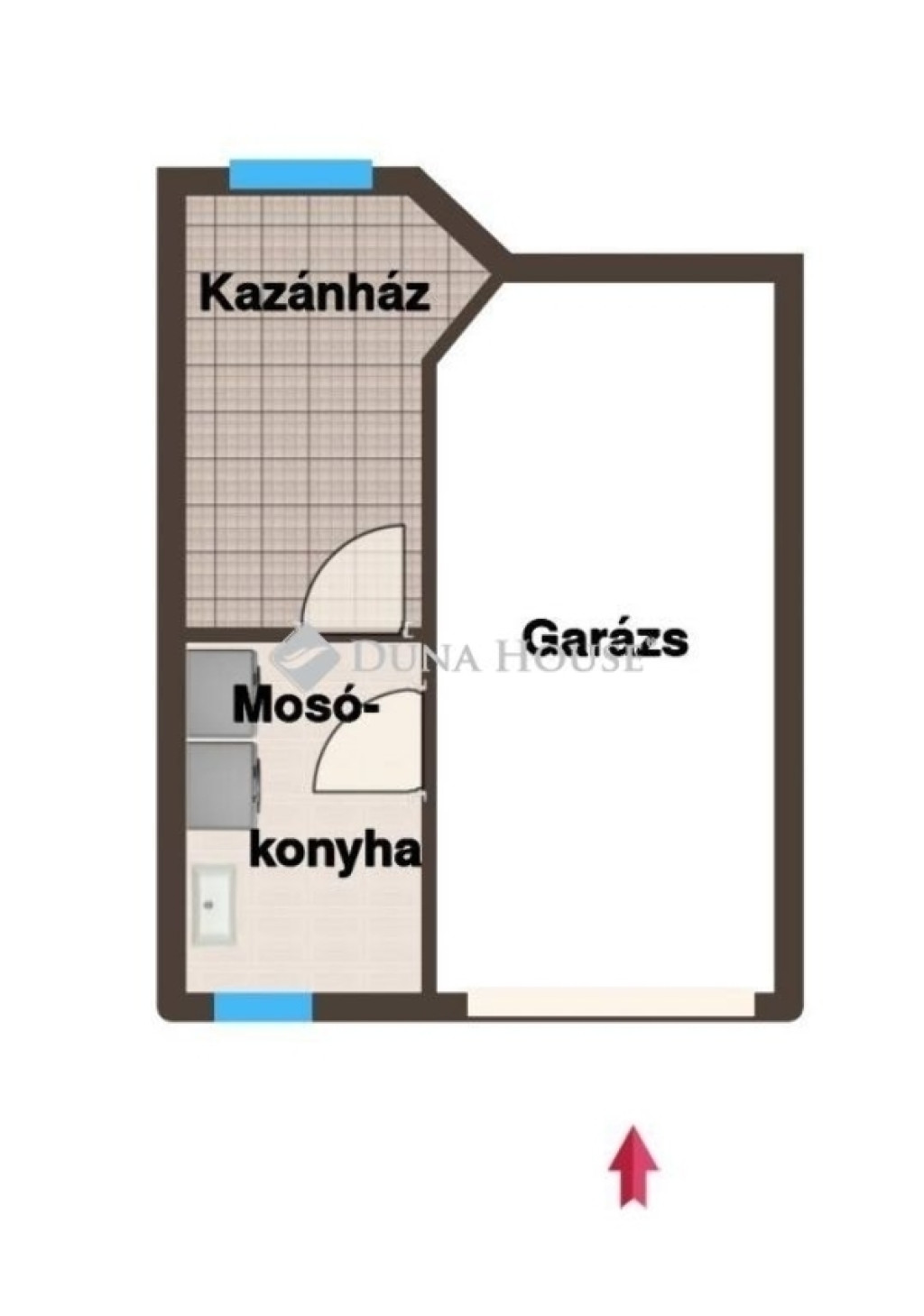 -szuterénszinten (fűtött, padlóburkolatos terület) mosókonyha és kazánház + tároló alapterülete: 11 m2