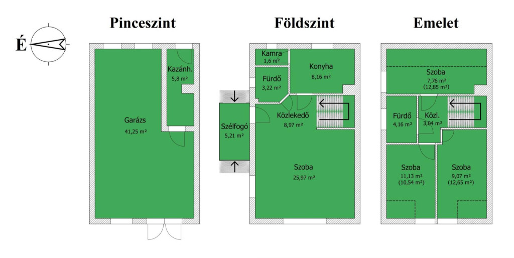 Nyíregyháza kedvelt részén, a Csemete utcában kínálunk eladásra egy 670 m²-es telken álló, 1990-es években épült, téglafalazatú ikerház-felet. Az ingatlan háromszintes (garázsszint + földszint + emelet), összesen 91 m² lakótérrel, praktikus, családbarát elrendezéssel: