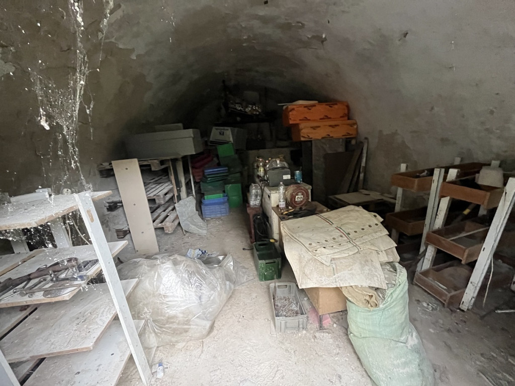A telek közepén egy 32 m2 -es, önálló, nagyméretű, száraz, kő boltozatos régi sváb pince áll. Ez műhely, raktár, műterem, garázs funkcióra is kitűnően alkalmas lehet .