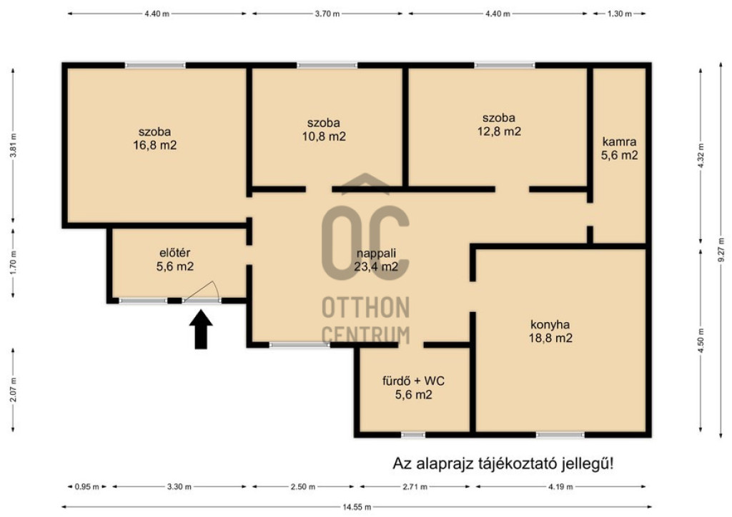 - Helyiségek: előtér, 3 szoba, nappali, konyha-étkező, kamra, fürdő-WC.
