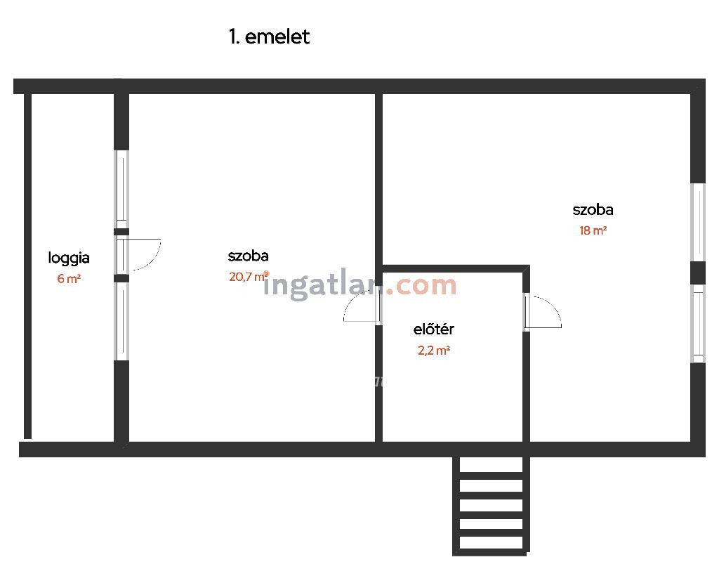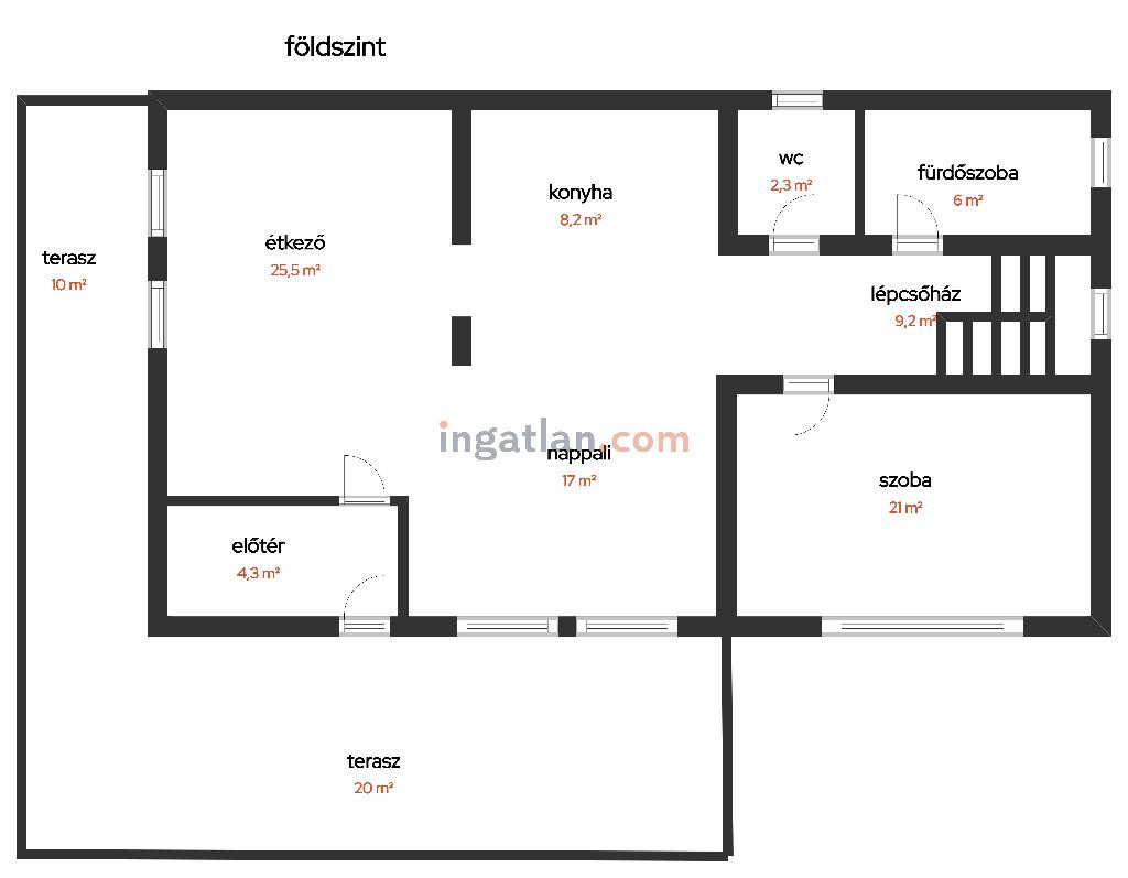 A földszinten amerikai konyhás nappali, étkező, fürdőszoba és külön WC található, valamint egy 30 nm-es fedett terasz nyújt kényelmet. Az emeleten két szoba kapott helyet, egyikük loggiával.
