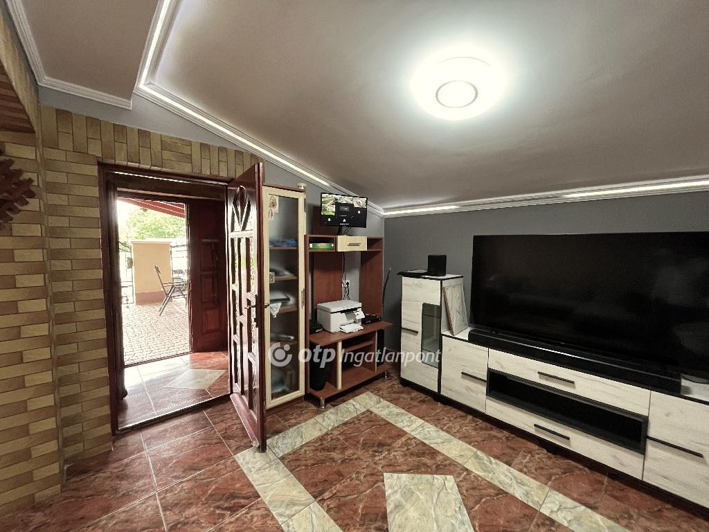 Az ingatlan téglafalazatú, 802 nm körbe kerített, nagyrészt térkövezett telken található, nyári konyhával, dupla garázzsal. Néhány éve teljeskörű felújításon esett át, nyílászárók, vezetékek, burkolatok cseréje történt. A konyha és a fürdőszoba is teljesen megújult.