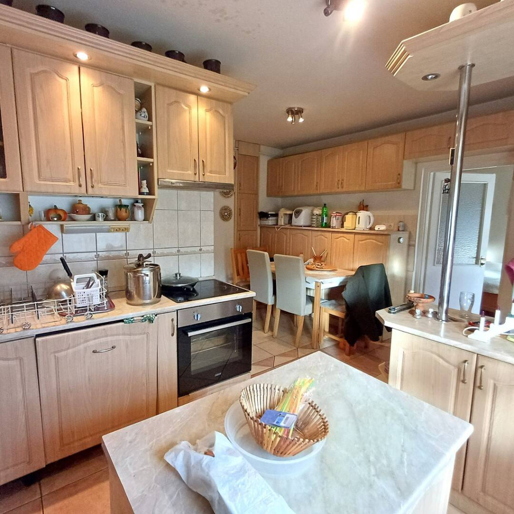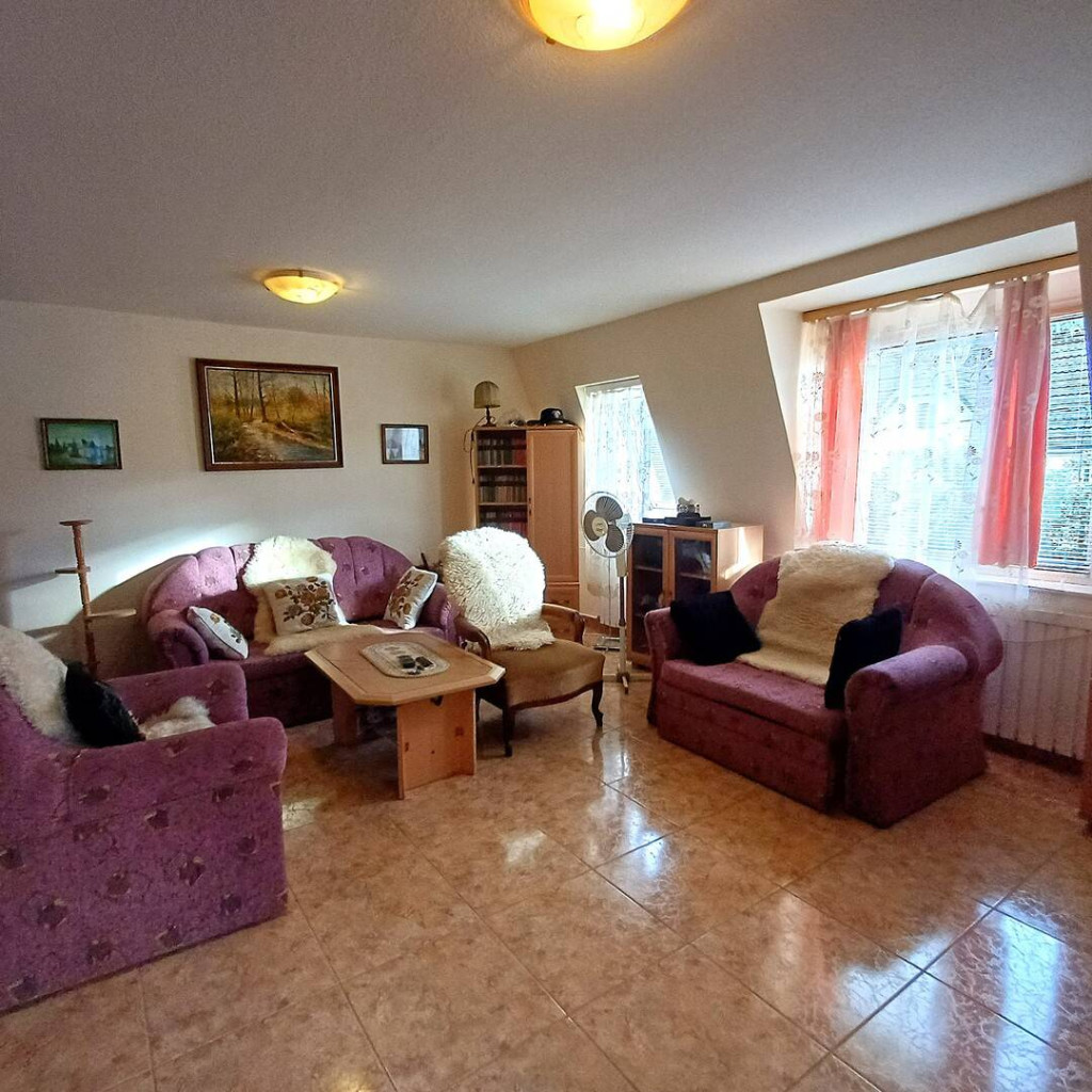 A ház hangulatos nappalival és világos terekkel rendelkezik, ideális választás nagyobb családoknak vagy többgenerációs együttélésre.