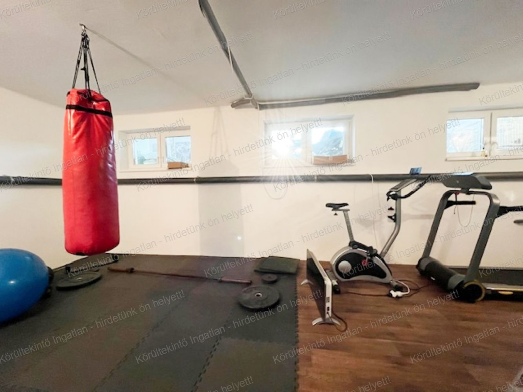 Szuterén: 50 m², korszerűsített, ablakokkal, többfunkciós helyiségek (konditerem, kamra, tároló).