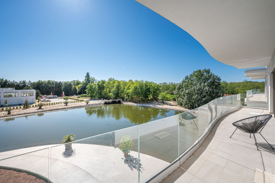 Diese atemberaubende, 80 m² große Luxusimmobilie mit Seeblick steht in Kecskemét-Ballószög zum Verkauf, in Ungarns einzigem Komplex dieser Art, der Dienstleistungen für Senioren anbietet.