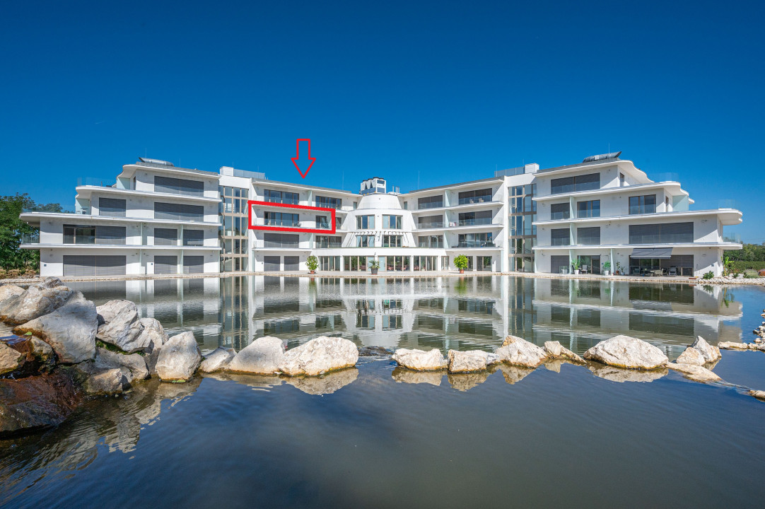Kecskemét-Ballószögön eladó ez a lenyűgöző, bruttó 80nm-es, tóra néző luxusingatlan, Magyarország egyetlen ilyen jellegű időskori szolgáltatásokkal bíró komplexumában.