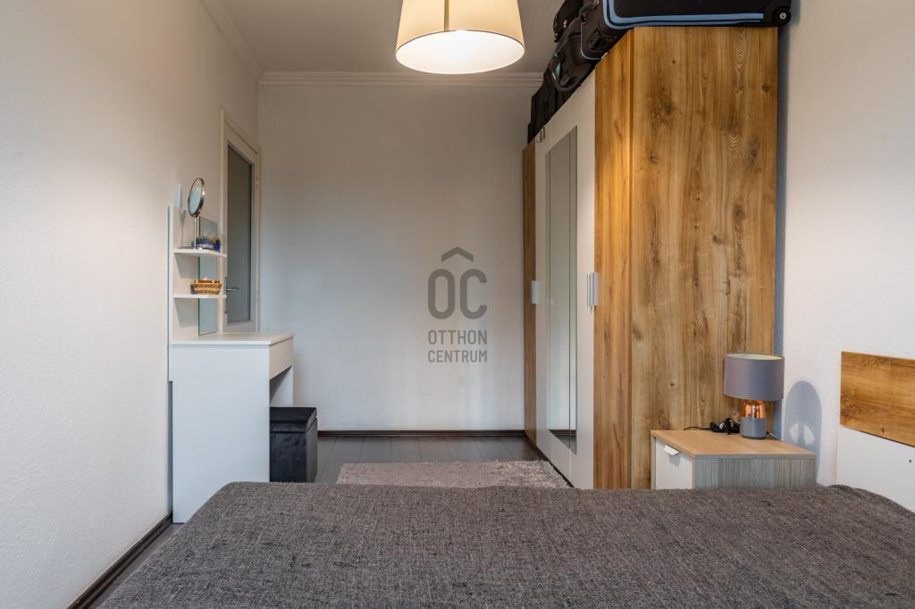 A gardróbszoba és a beépített szekrények bőséges tárolóhelyet biztosítanak, a külön fürdő és WC praktikus megoldás a mindennapokban.
