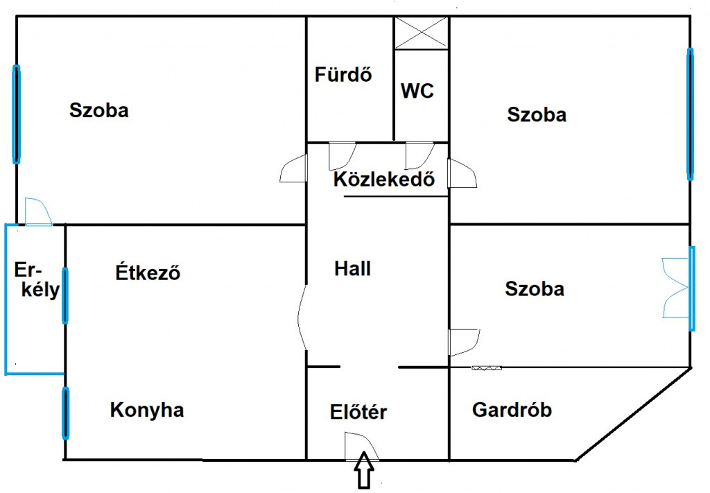Az ingatlan elosztása rendkívül kedvező és tágas: