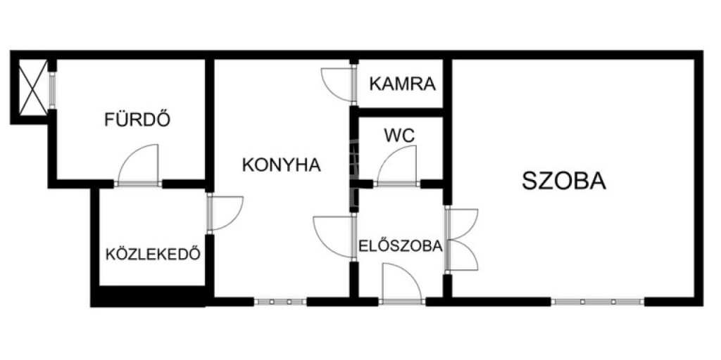 A lakás egy szoba, konyha, kádas fürdőszoba , külön WC és kamra elrendezésű.