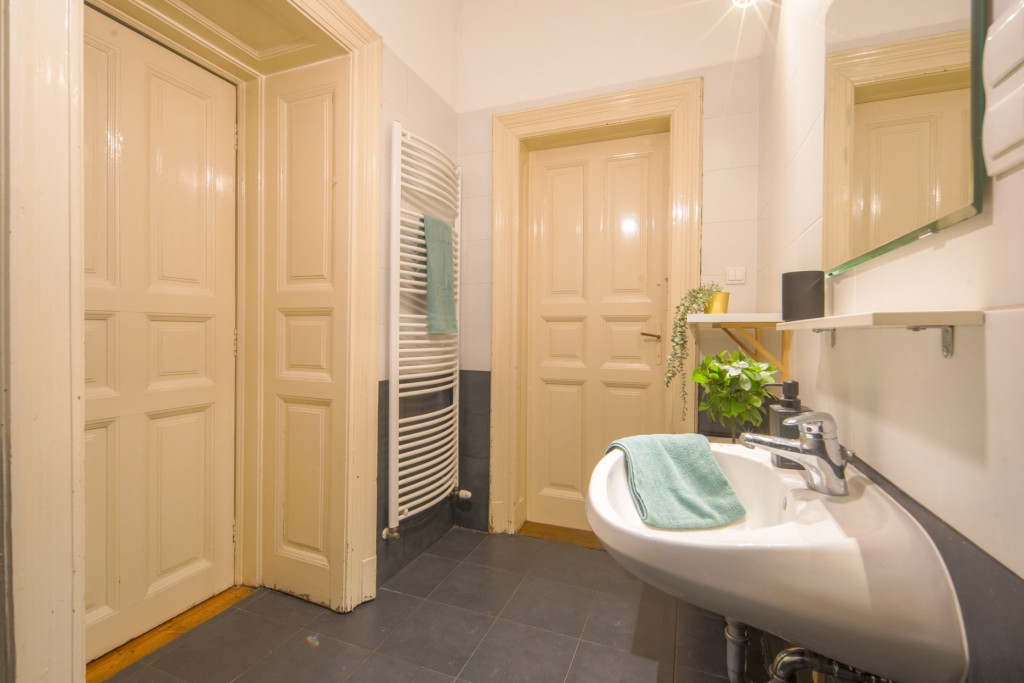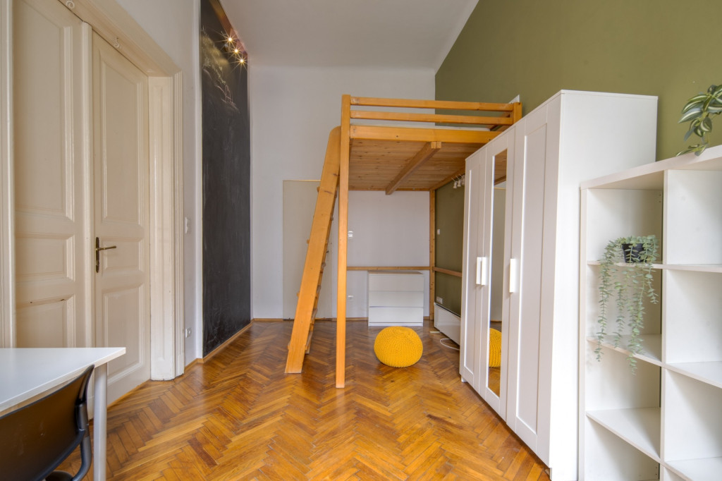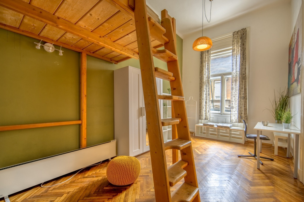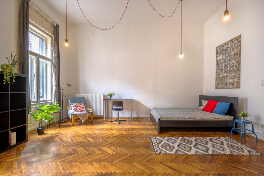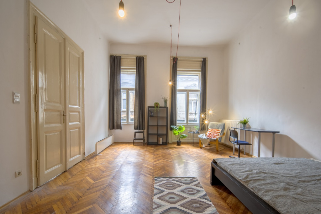 Eladó a VII. kerületben, a Körúthoz közel, egy kétszobás, hangulatos, világos, utcai, felújított lakás.