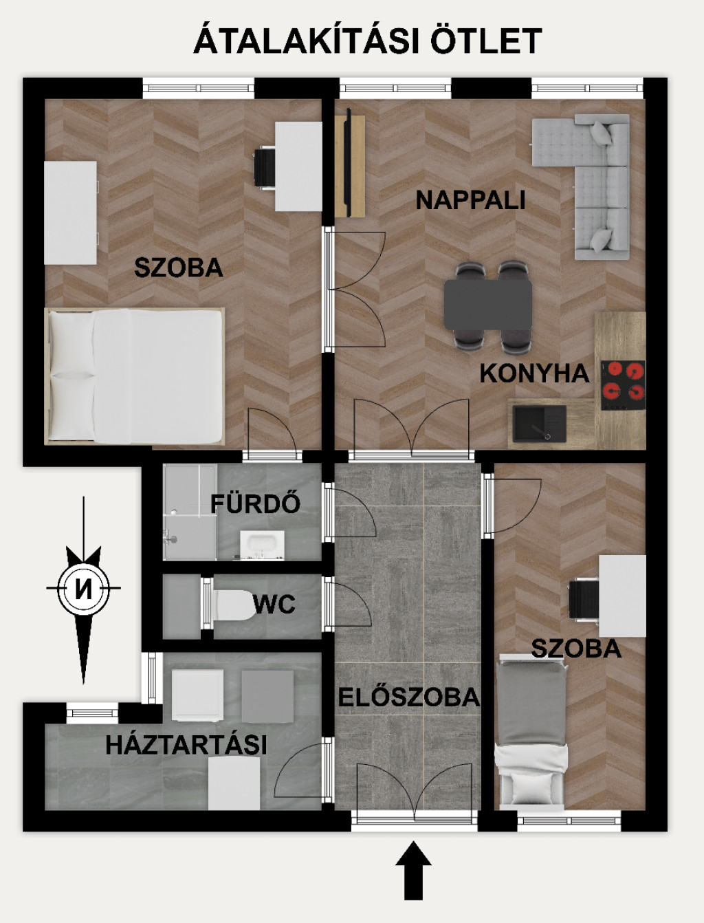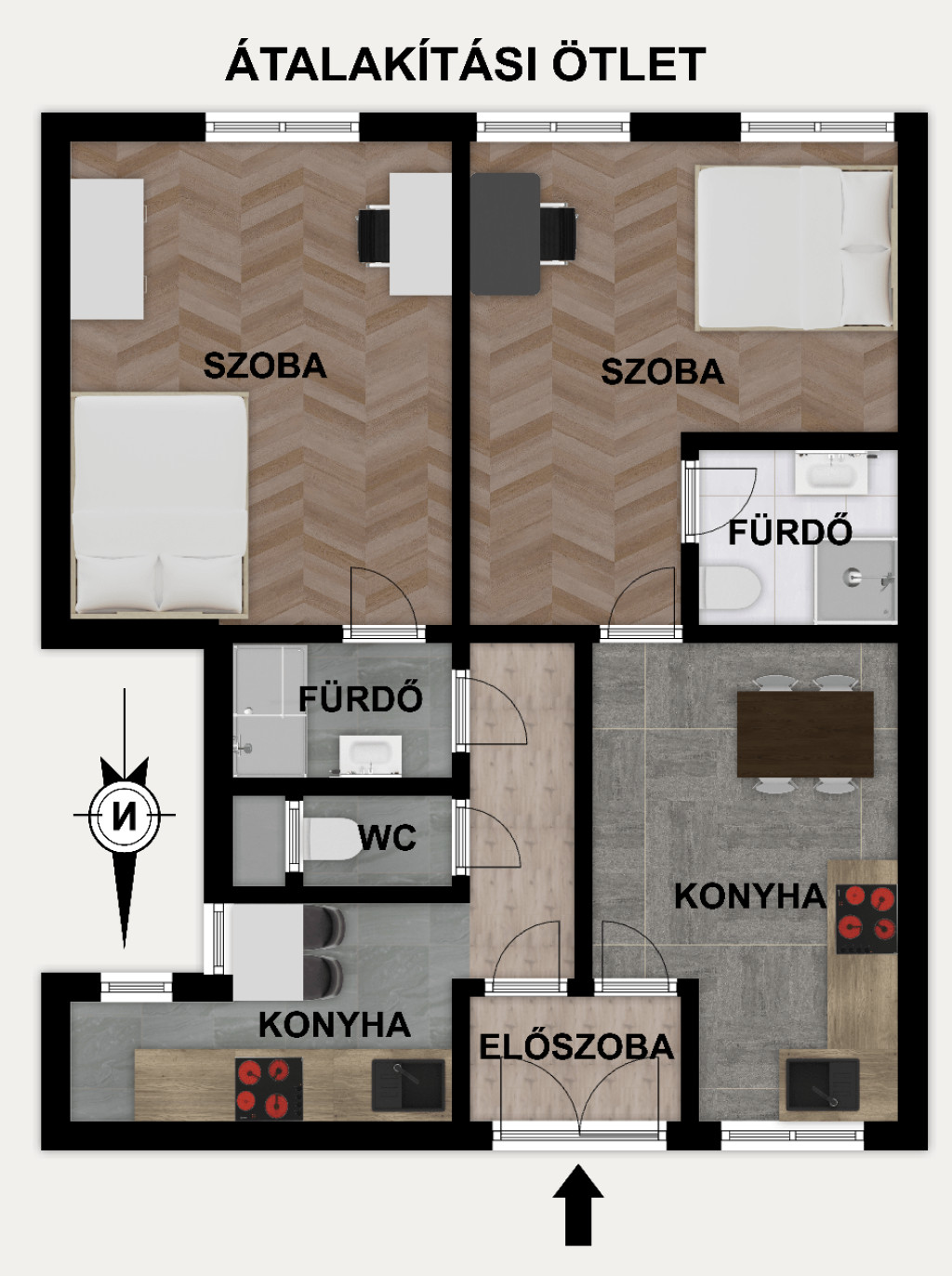 Könnyedén átalakítható háromszobás lakássá, vagy kétlakásossá is, készítettem hozzá átalakítási terveket.