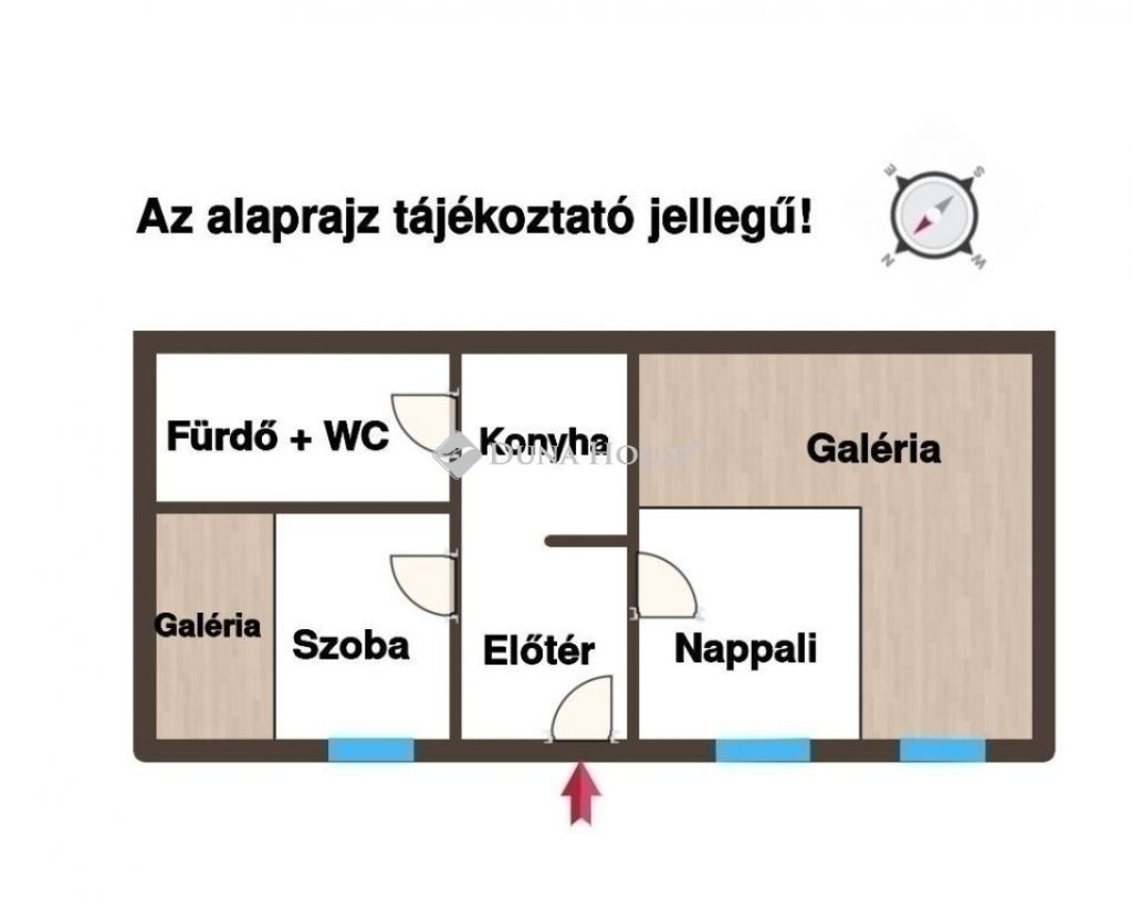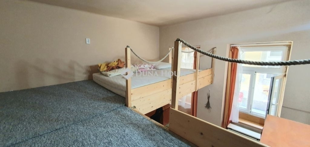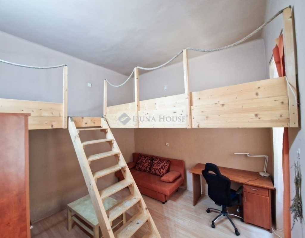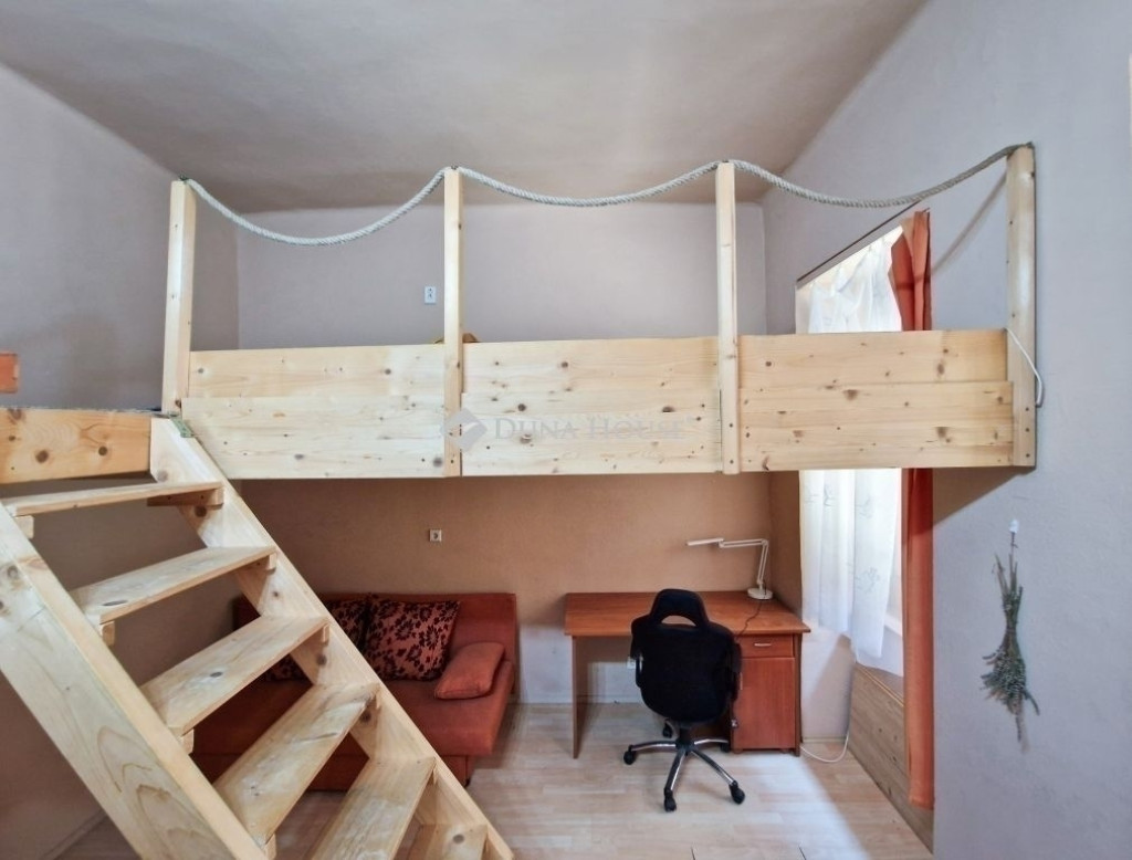 Az iátlagos állapotú, praktikus elrendezésű, 32 nm-es lakásban az igényes fa galériák extra térhasználatot biztosítanak.