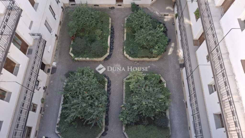 A ház központi elhelyezkedése ellenére a lakás a csendes, belső udvarra néz, felső emeleti elhelyezkedésének köszönhetően jó benapozottságú, egész nap világos.