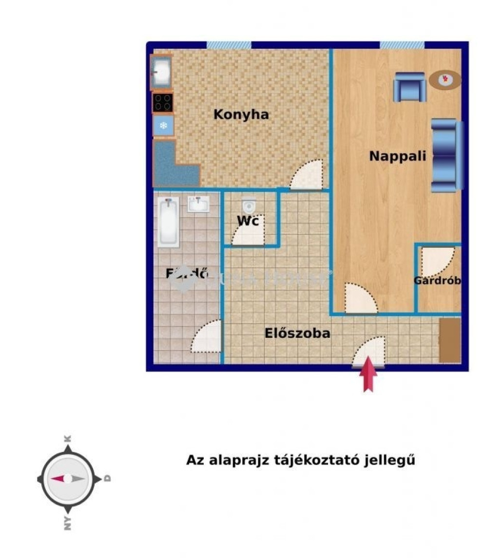 Fényárban úszó nappali, amihez pazar kis gardrób is tartozik, világos, tágas konyha, kényelmes fürdőszoba került kialakításra.