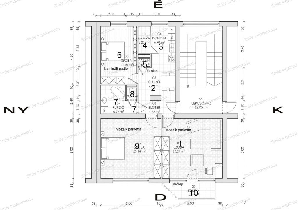 • É-D-i tájolás, egész nap világos, napfényes otthon