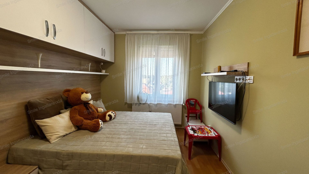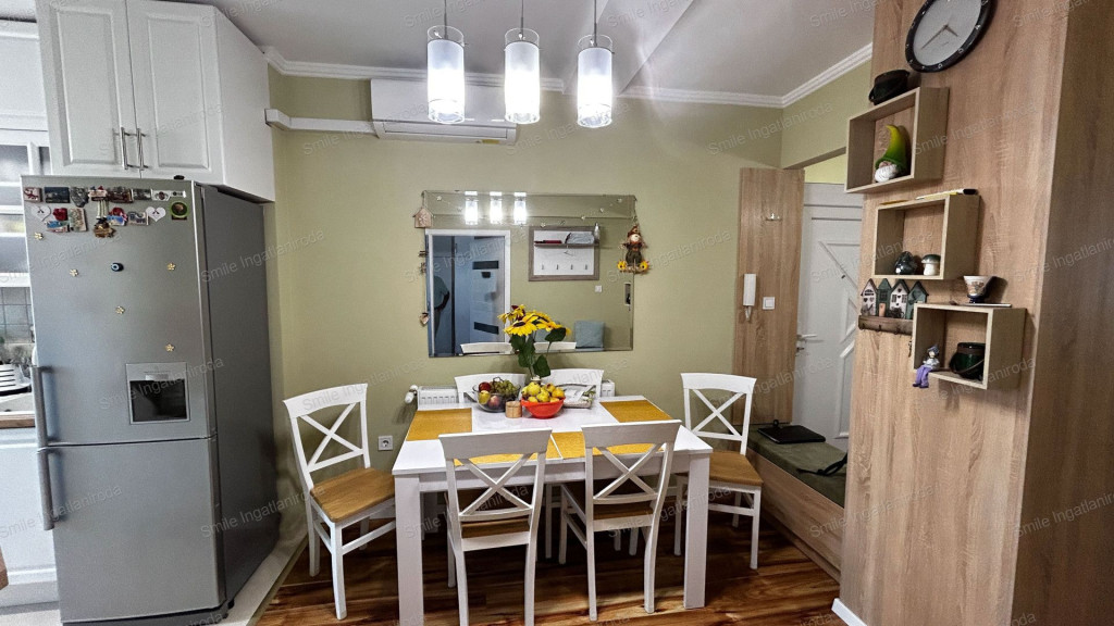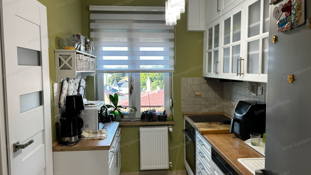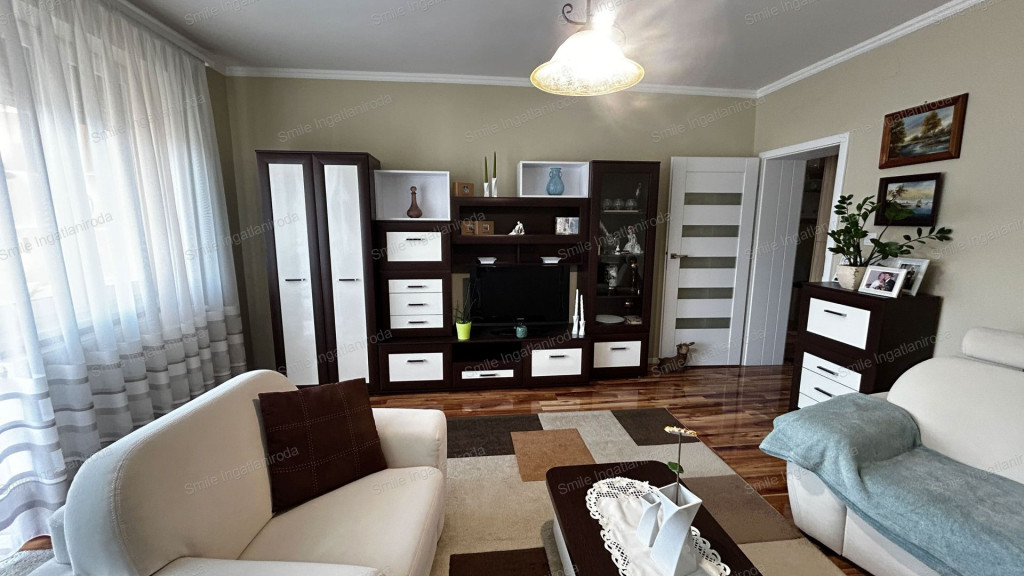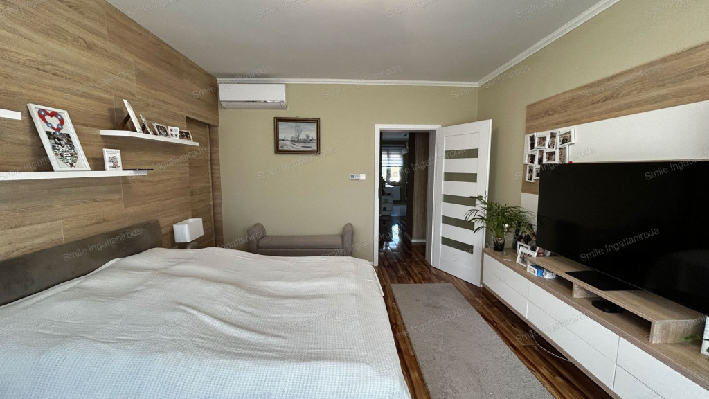 • Amerikai konyhás nappali + 2 hálószoba + gardrób + fürdőszoba + külön WC