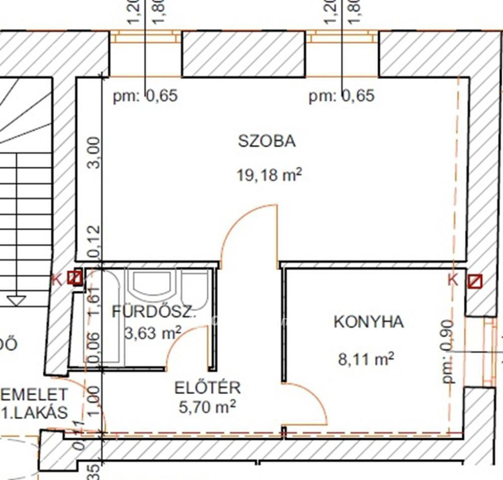37 nm egy szobás, konyha étkező, előszoba, fürdőszoba- wc.