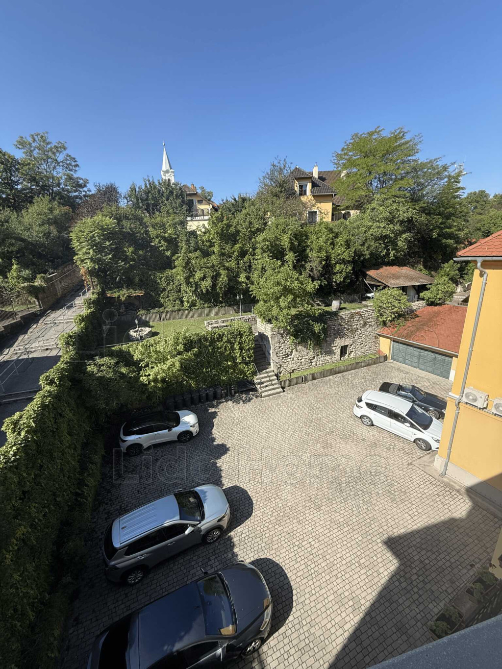 -A parkoló fölött egy igényesen kialakított, parkosított közösségi kert található, sütögetővel és pihenőhellyel, ahonnan lenyűgöző panoráma nyílik a Várra.