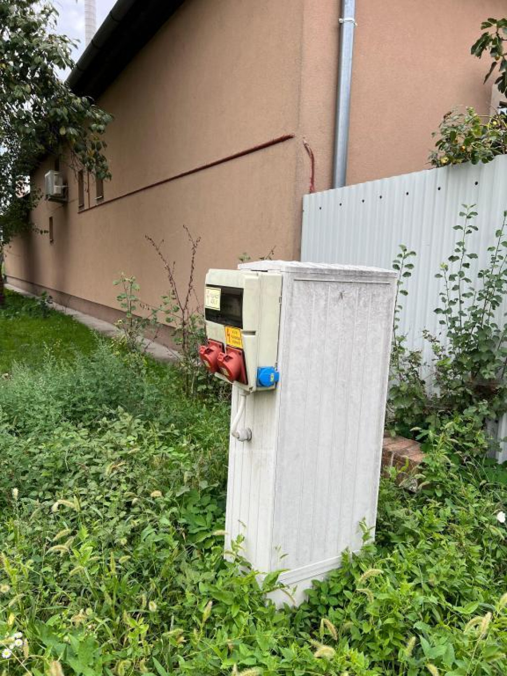 Az utcafront aszfaltozott, rendezett, kiváló lakóközösséggel. Minden közmű be van vezetve: víz, gáz és 3 fázisú ipari áram (400V, 3x25A) is elérhető. A telek sarkában földkábeles áramcsatlakozás található.