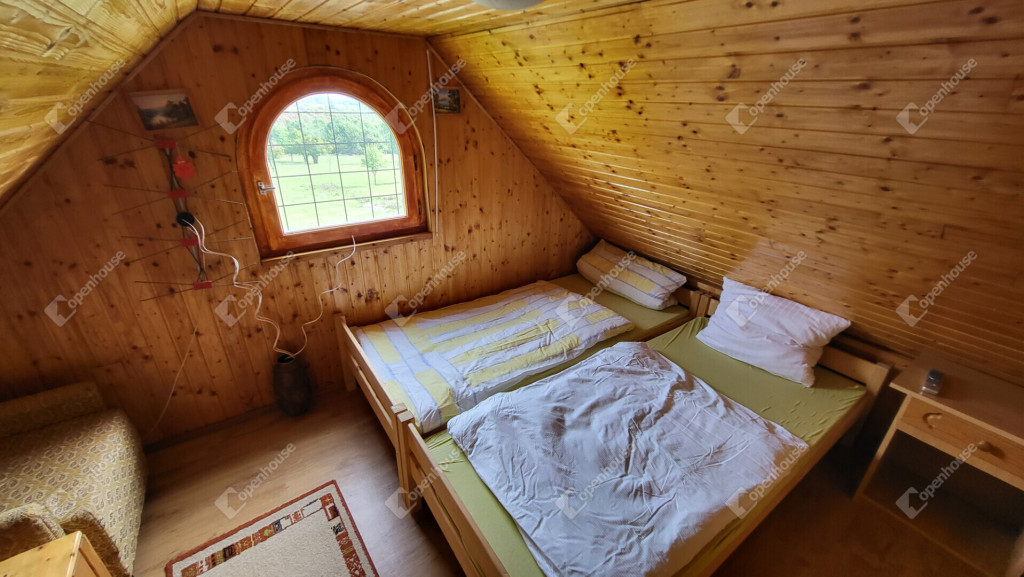 - a telken található egy jó állapotú faház, nappalival, konyha és fürdő, az emeleten kettő szoba