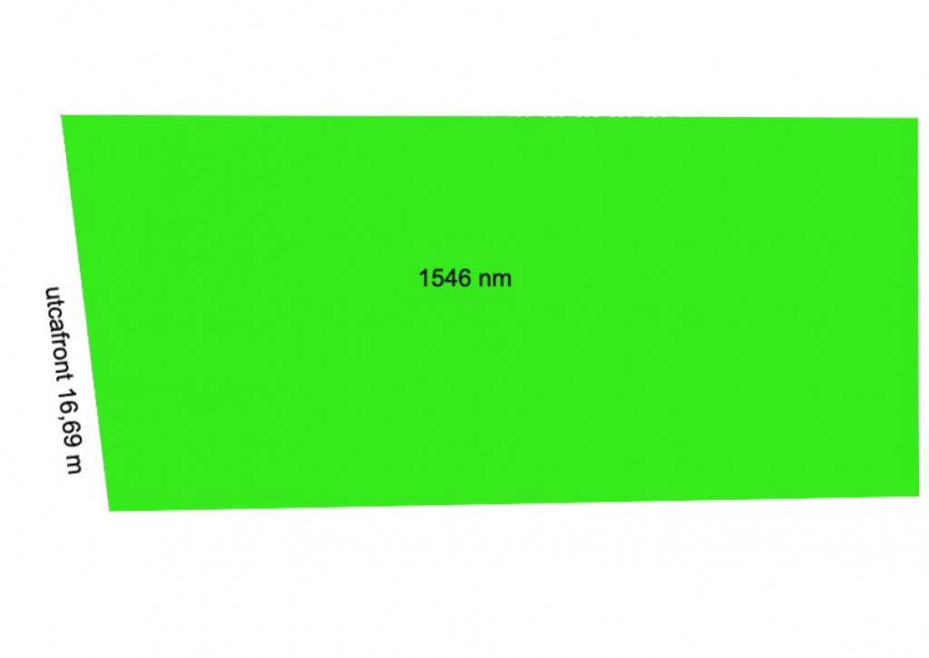 Utcafronti szélesség: 16,69 m. A telken néhány gyümölcsfa található. Övezeti besorolás: Lf-3 (oldalhatáros, legkisebb szélesség 16 m, legkisebb teleknagyság 800 nm, 30% beépíthető, építménymagasság: 5 m, zöldfelület 50%)