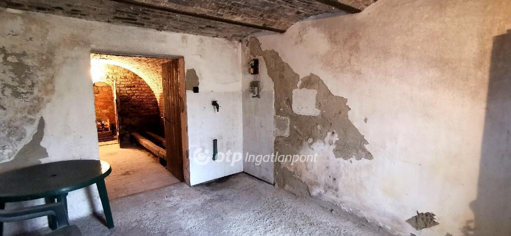 A földszinten téglából igényesen kirakott boltíves borospince, feldolgozó helyiség, illetve egy állandó klímával rendelkező gyümölcstároló várja új tulajdonosát.