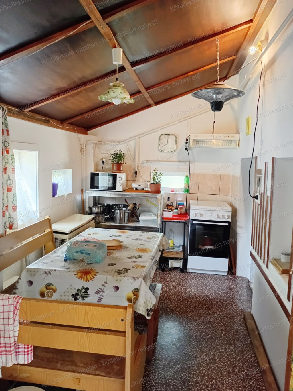 Fűtése: gáz konvektor, kandalló, infra, a meleg víz villany bojlerrel biztosított.