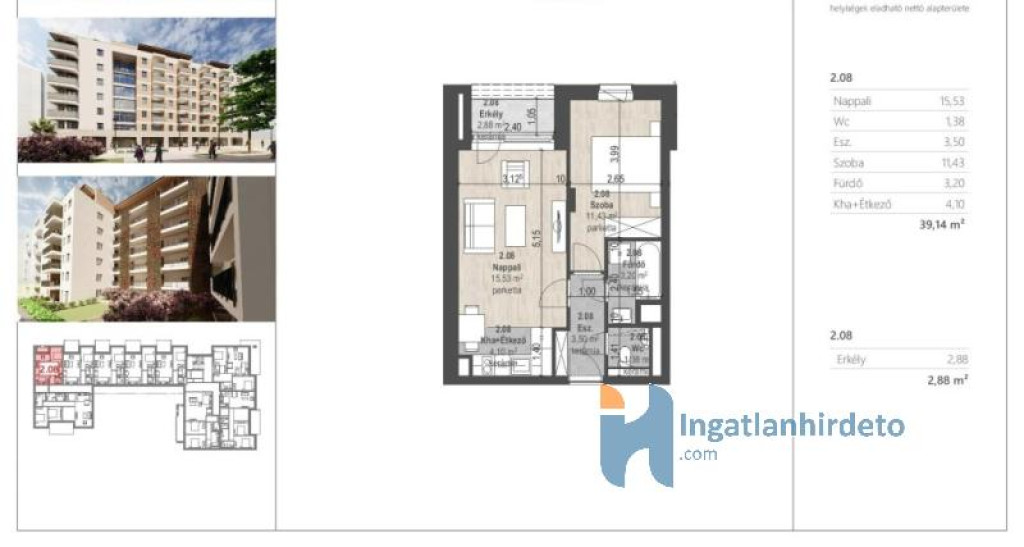 Kalkulált € ár: 213 838 €1 436 842 Ft/m2