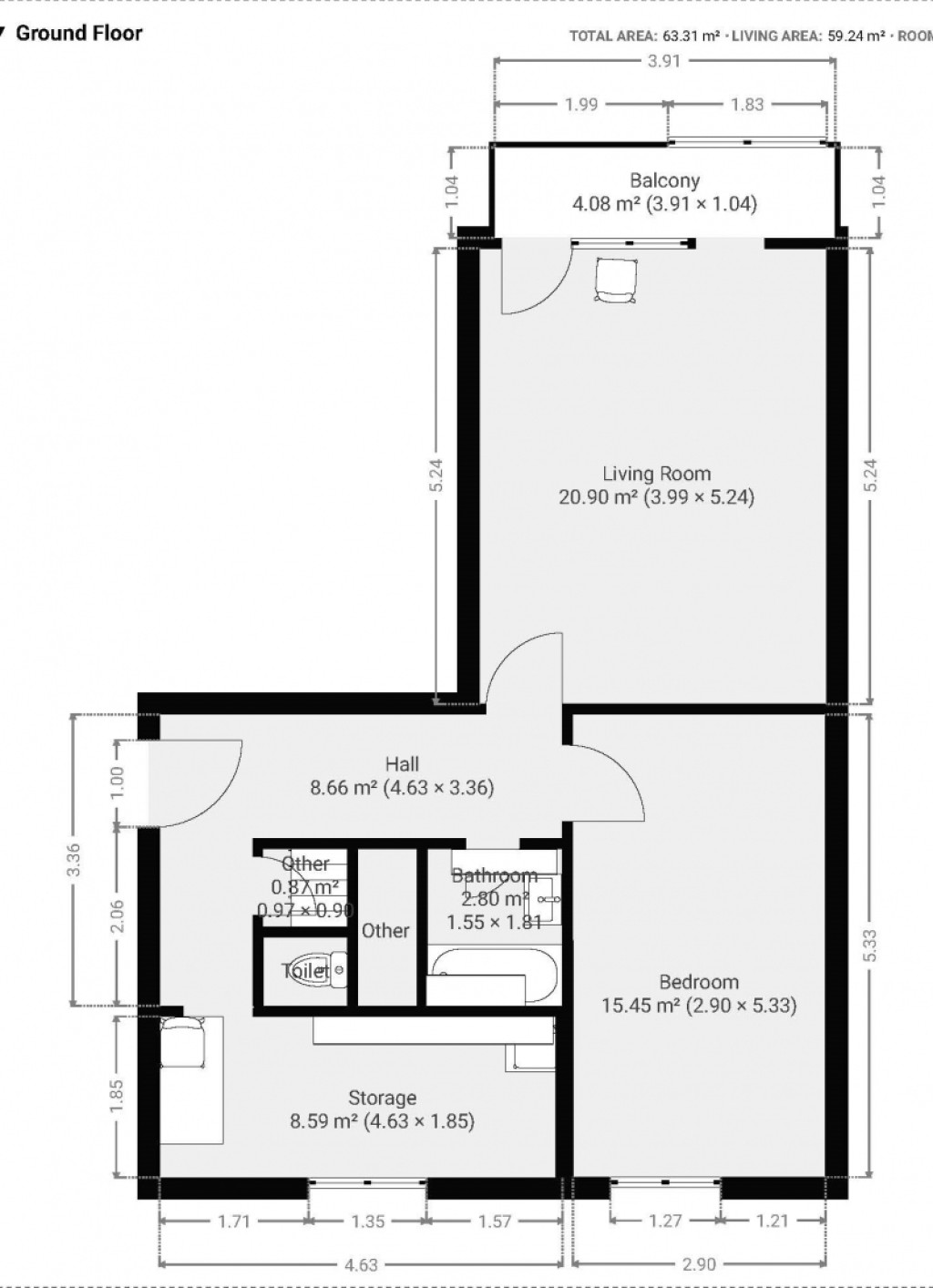 Kalkulált € ár: 304 348 €1 487 500 Ft/m2