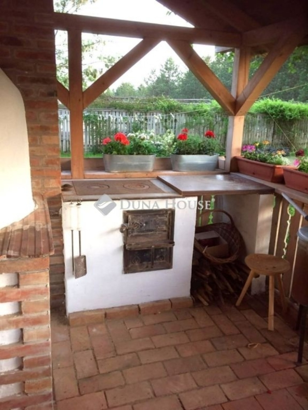 - földszinten: amerikai konyhás nappali, kamra, előtér, WC, nyitott teraszon: búbos