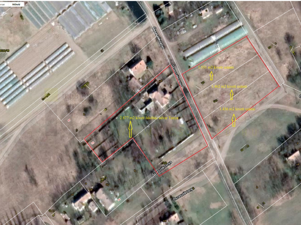 - 2.877 m2 kivett lakóház udvar, gazdasági épület