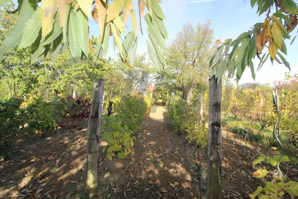 - hat sor, 25 méter hosszú gondozott szőlőlugas,