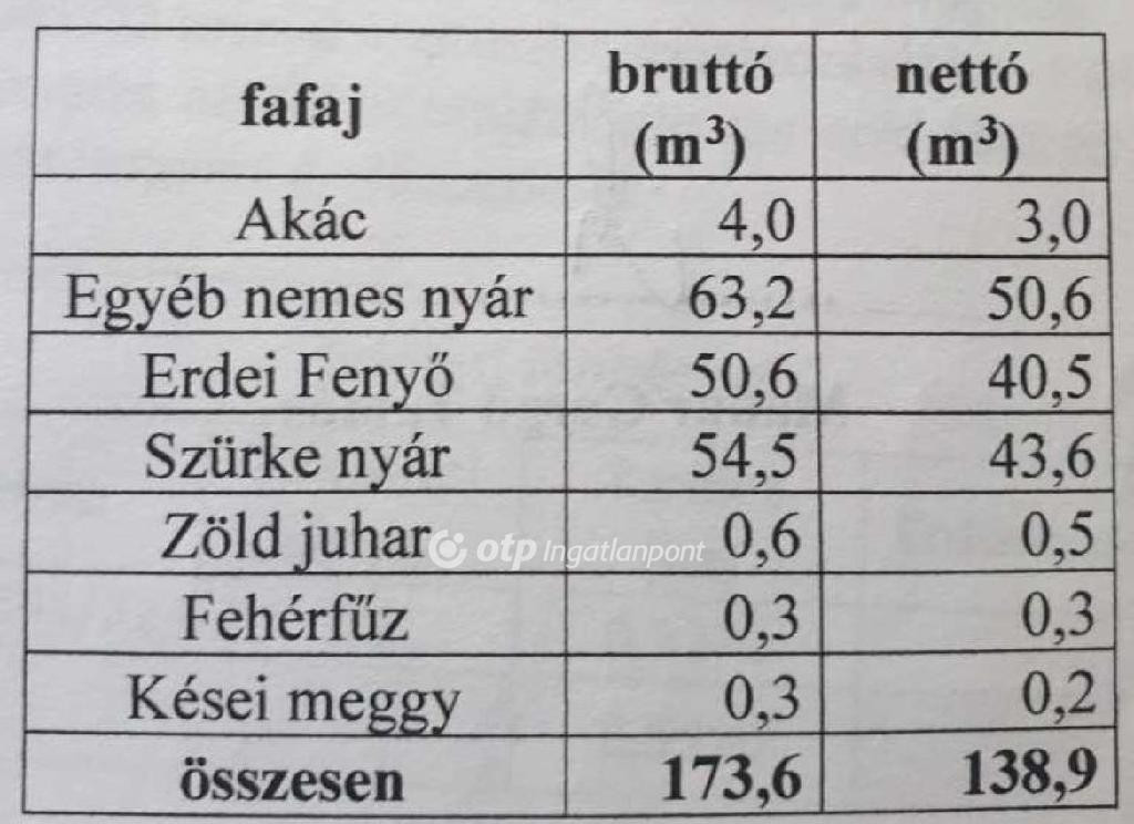 - Egyéb nemes nyár: 63,2 m? (nettó 50,6 m?)