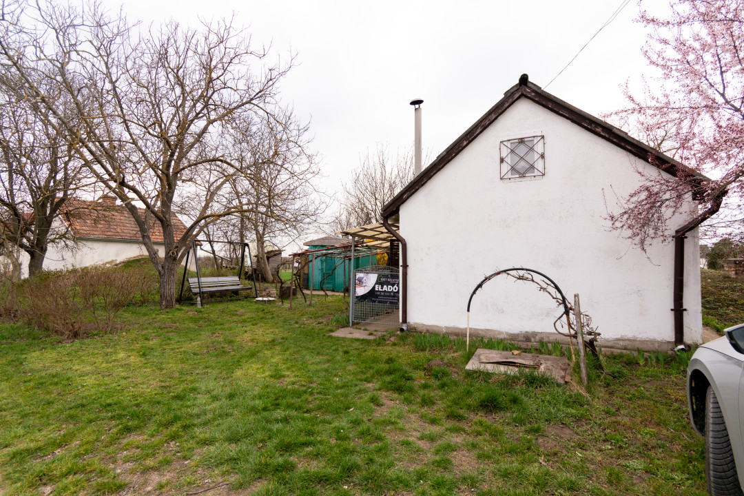 Az egyik terület 1161 m² nagyságú, 5,45 aranykorona értékű, szőlő művelési ágú ingatlan, amelyen egy kb. 20 m²-es gazdasági épület található. Az épület korábban présházként funkcionált, a tetőtérben további két fekvőhely került kialakításra, így ideális alkalmi tartózkodásra is. A fűtés elektromos radiátorral, valamint cserépkályhával megoldott.
