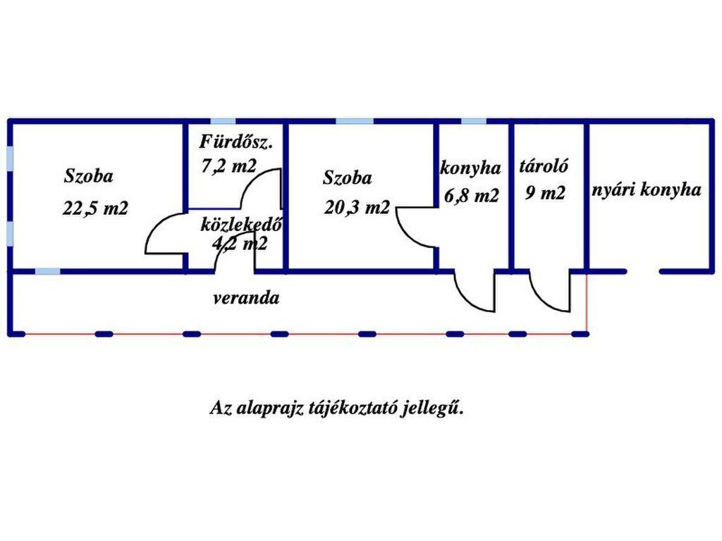 Helyiségei: szoba, közlekedő, fürdőszoba, felújítás alatt lévő : szoba, konyha, tároló és egy jelenleg még tető nélküli nyári konyha. A területe: 70 m2