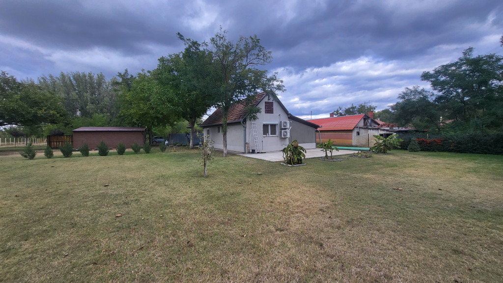 Kiskunmajsa Kígyóspusztán eladó egy közel egyhektáros, 9992 négyzetméteres területen fekvő, háromépületes tanya, amely csendes, nyugodt környezetben helyezkedik el, végig kövesúton megközelíthető, mindössze hatvan méterre a főúttól. Az ingatlan ára 68 millió forint, bútorozottan is megvásárolható és hitelezhető. A tanya elhelyezkedése rendkívül kedvező, hiszen a buszmegálló mindössze száz méterre található, így a város könnyen elérhető tömegközlekedéssel is.A tanya három különálló épületből áll. Az első, 70,49 négyzetméteres lakóépület 2019-ben teljes körű felújításon esett át, melynek során a teljes villanyhálózat, a szigetelés, valamint az ablakok és ajtók cseréje megtörtént. A ház tíz centiméteres nikecellel lett szigetelve, a mennyezeten pedig negyvenöt centiméter kőzetgyapot biztosítja a megfelelő hőmegtartást. A fűtésről és hűtésről H tarifás, inverteres klímák gondoskodnak, emellett két hónapja új, öt évig érvényes víztisztító berendezés is beépítésre került. Az épület igényes, modern kivitelezésű, azonnal beköltözhető állapotban van.A második, 69,81 négyzetméteres épület gazdasági épületként van nyilvántartva, amely részben felújított állapotban található. Új tetőszerkezetet kapott, valamint elkészült a padlófűtés rendszerének kiépítése is, így már csak a burkolás és a villanyszerelés van hátra. Ez az épület kiváló lehetőség vendégháznak, műhelynek vagy akár gazdasági célra is.A harmadik épület 67,20 négyzetméteres, melléképületként van minősítve, és eredeti állapotában található, felújítást igényel.Az ingatlanok vegyes falazatúak. A környéken nincs közművesített víz és gáz, ezért a telken három darab fúrt kút található, amelyek hatvannyolc és hetvenhét méter mélységig lettek kialakítva, biztosítva a vízellátást. A tanya teljes területe körbekerített, elektromos kapukkal ellátott, a dupla, 6,7×7 méteres garázs szintén elektromos működtetésű. A biztonságról kilenc kamera gondoskodik, a nagy füves terület öntözését pedig vízágyúval lehet megoldani.A birtokon 380 voltos, 3×25 amperes ipari áram áll rendelkezésre, valamint egy 13 négyzetméteres pince is tartozik a területhez. A hely kiválóan alkalmas állattartásra, gazdálkodásra, de akár kétgenerációs családi otthonként is funkcionálhat. A nyugodt, természetközeli környezet, a kiváló megközelíthetőség és a modernizált épületek mind hozzájárulnak ahhoz, hogy ez az ingatlan egyedülálló lehetőséget kínáljon a vidéki élet szerelmeseinek.
