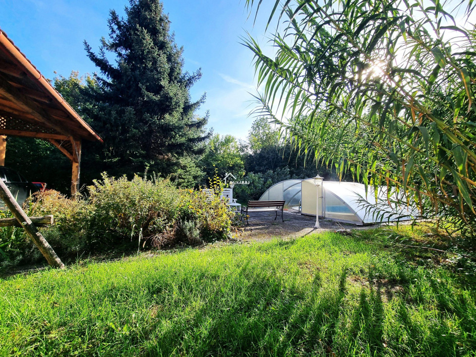 A birtokon a lakóházon kívül fedett medence, gyümölcsös, pagodás kiülő kemencével, nagyméretű fedett terasz valamint 360 m2-es gazdasági épület található.
