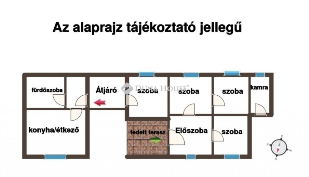 Elrendezése: 4 szoba, konyha, kamra és fürdőszoba.